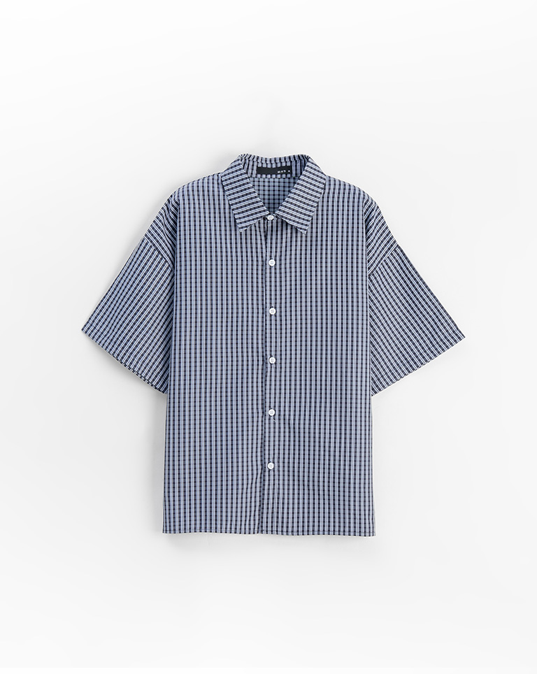 男裝 經典格紋刺繡字短袖襯衫-藍M/L/XL