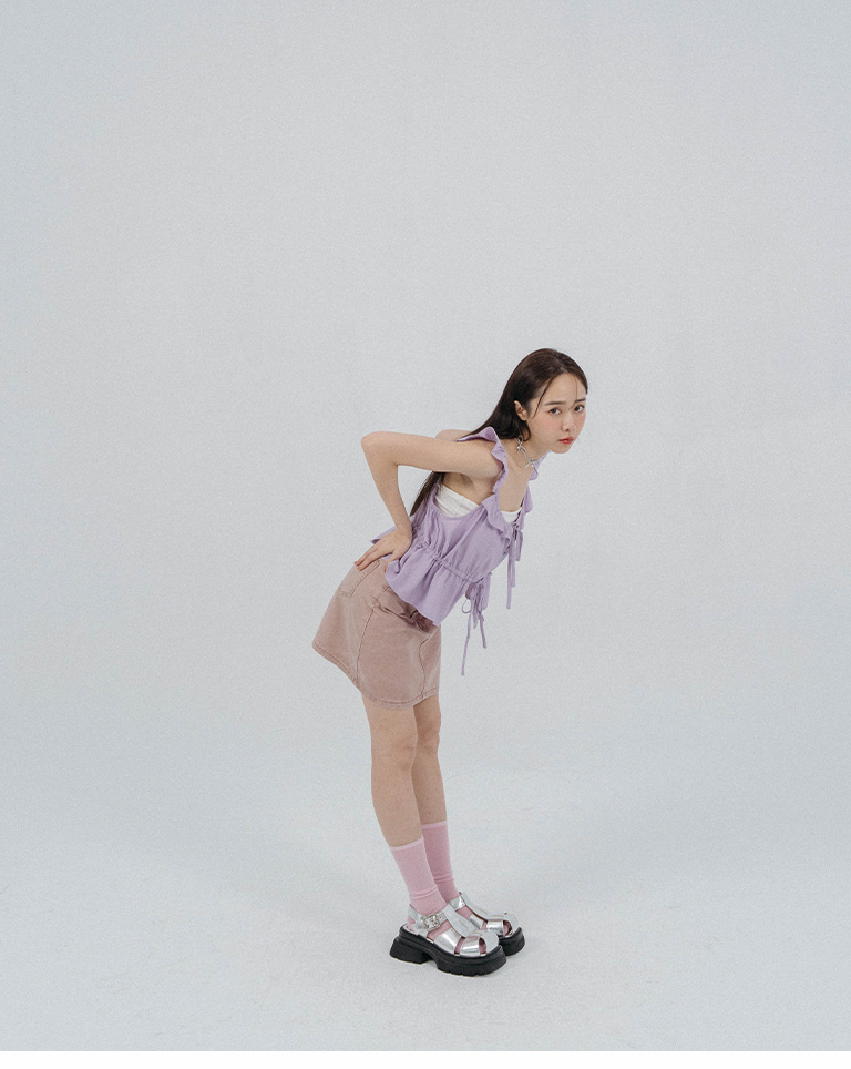 S~L身形實測!分尺寸皺皺木耳邊透膚高領長袖上衣