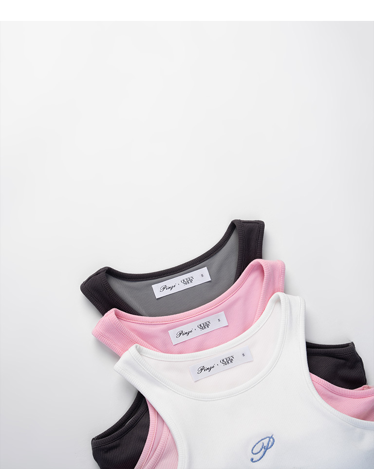品子聯名 刺繡字附bra坑條削肩背心