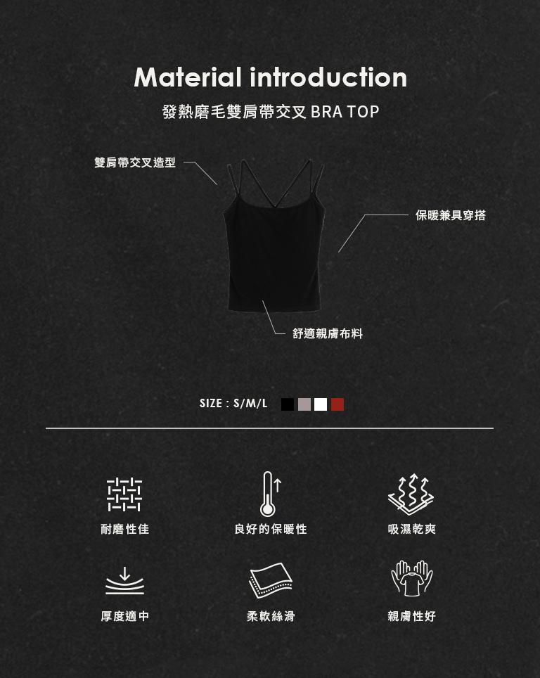 發熱磨毛雙肩帶交叉Bra Top-黑 S/M/L