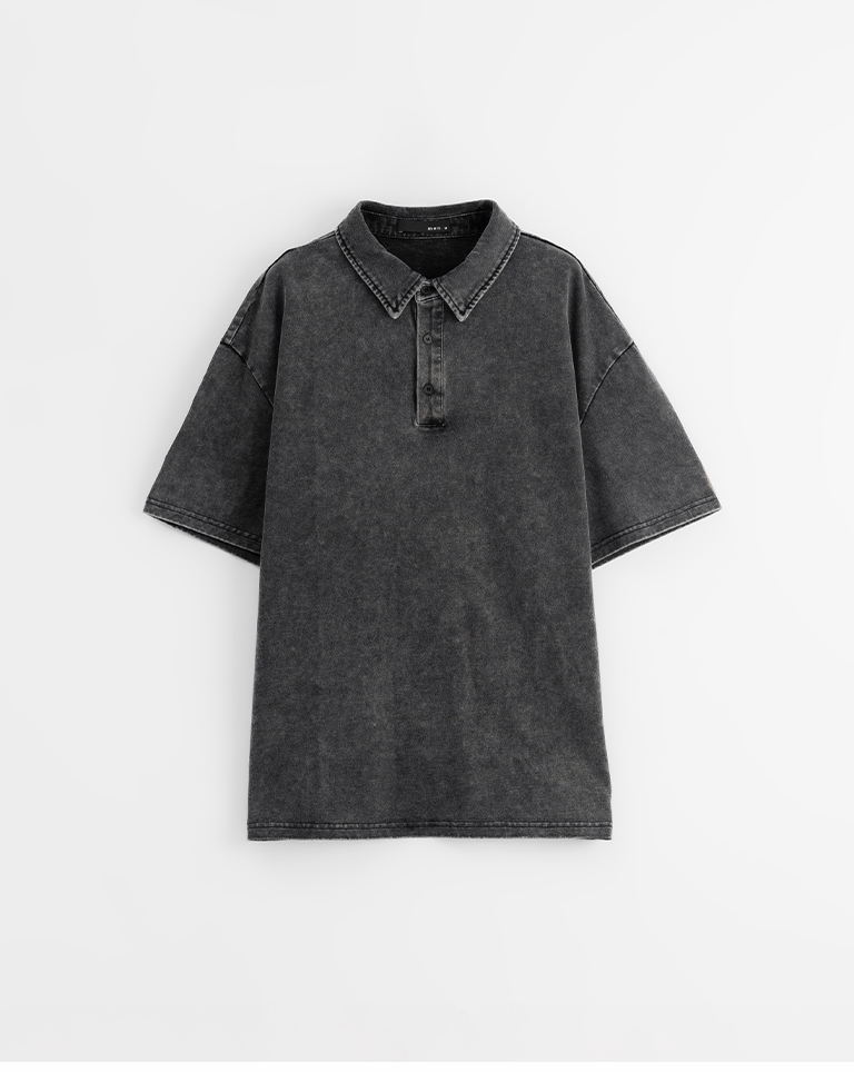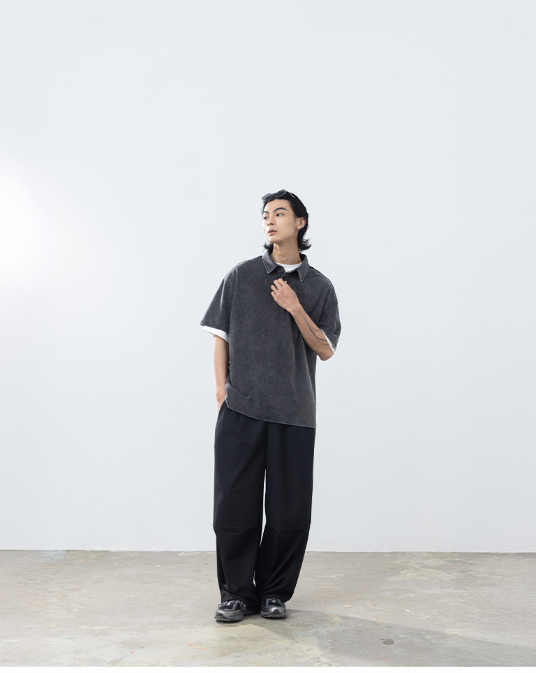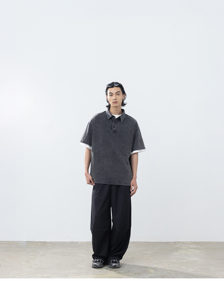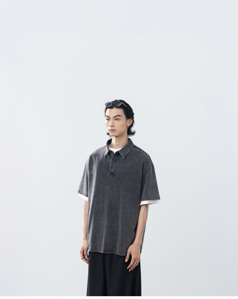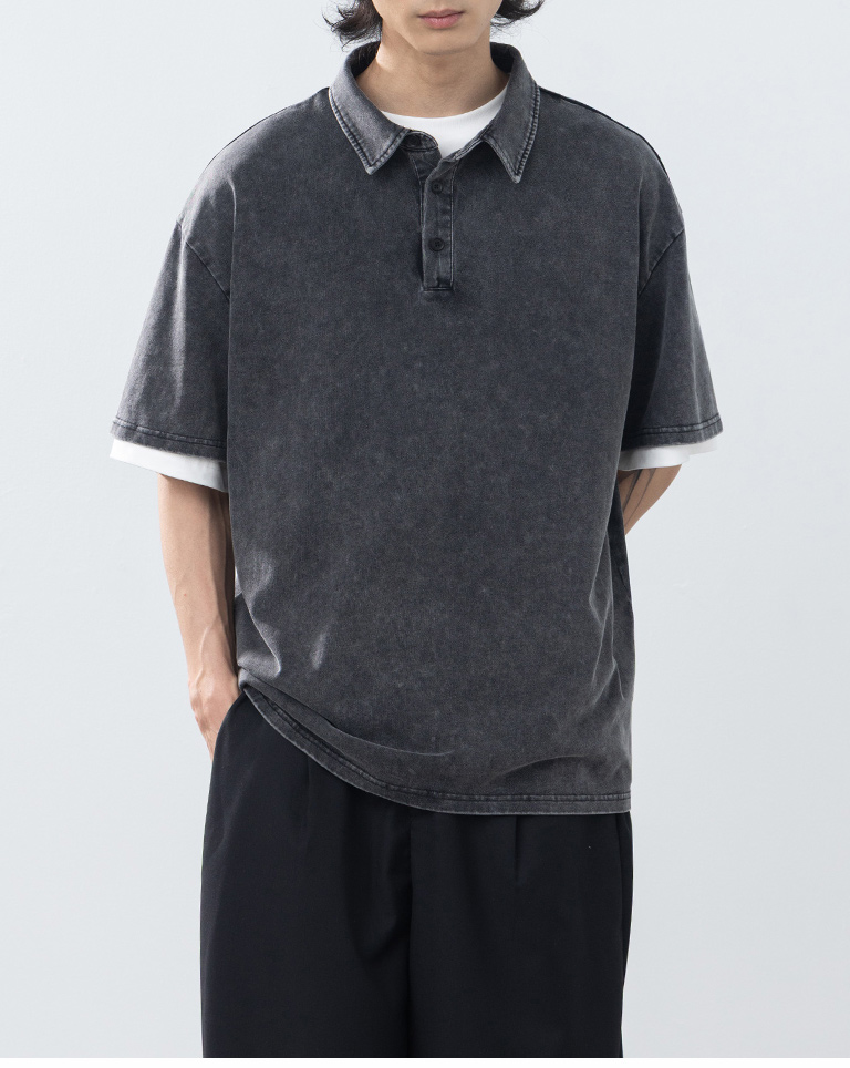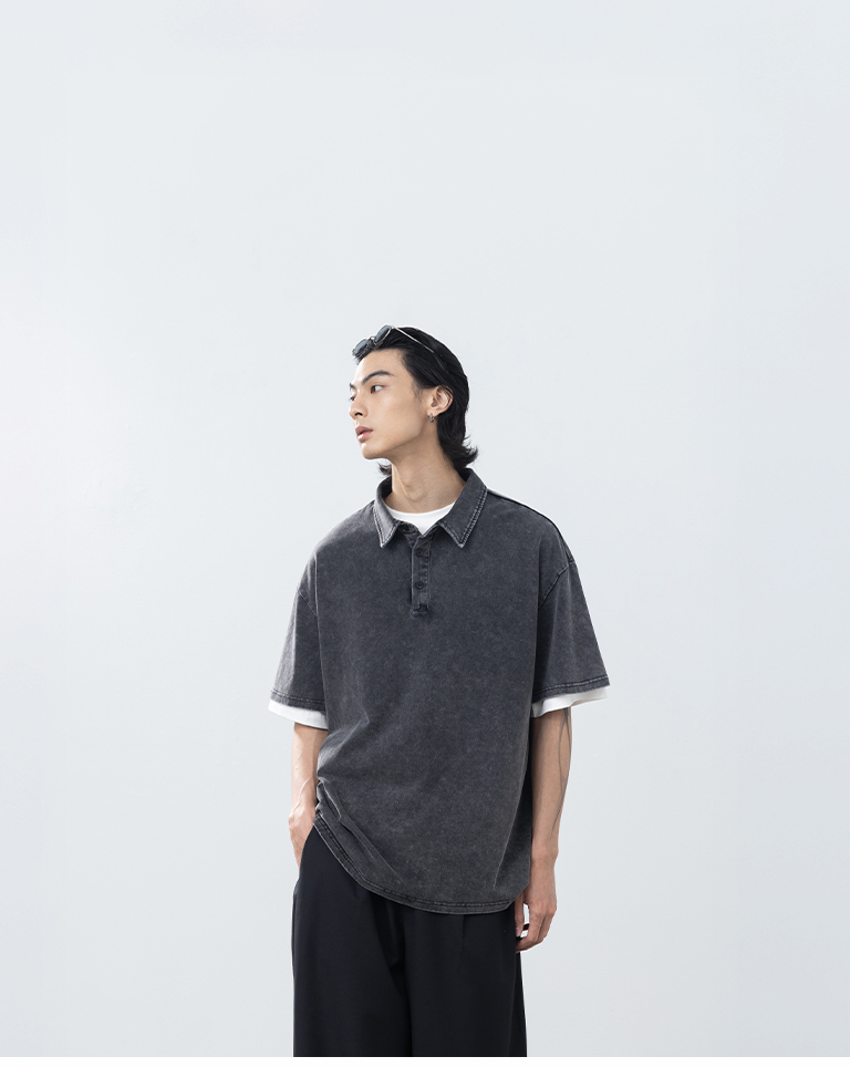 男裝 洗水半門襟POLO領短袖上衣