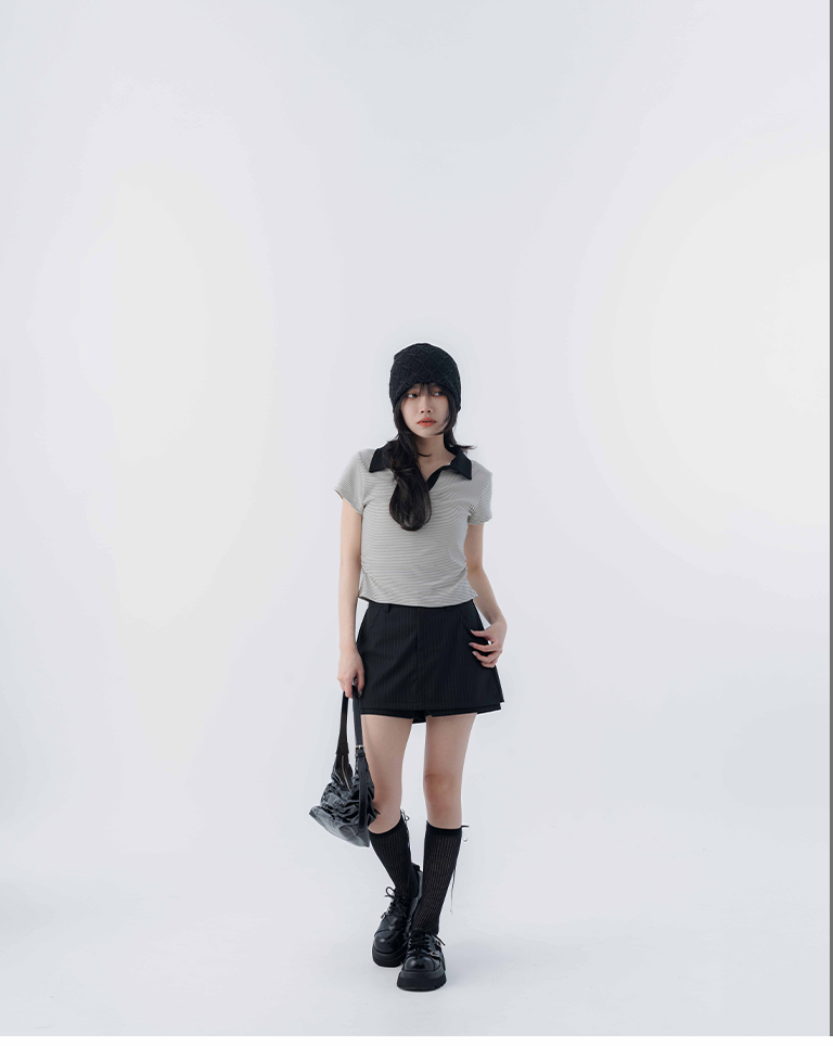 簡約條紋半門襟領片設計