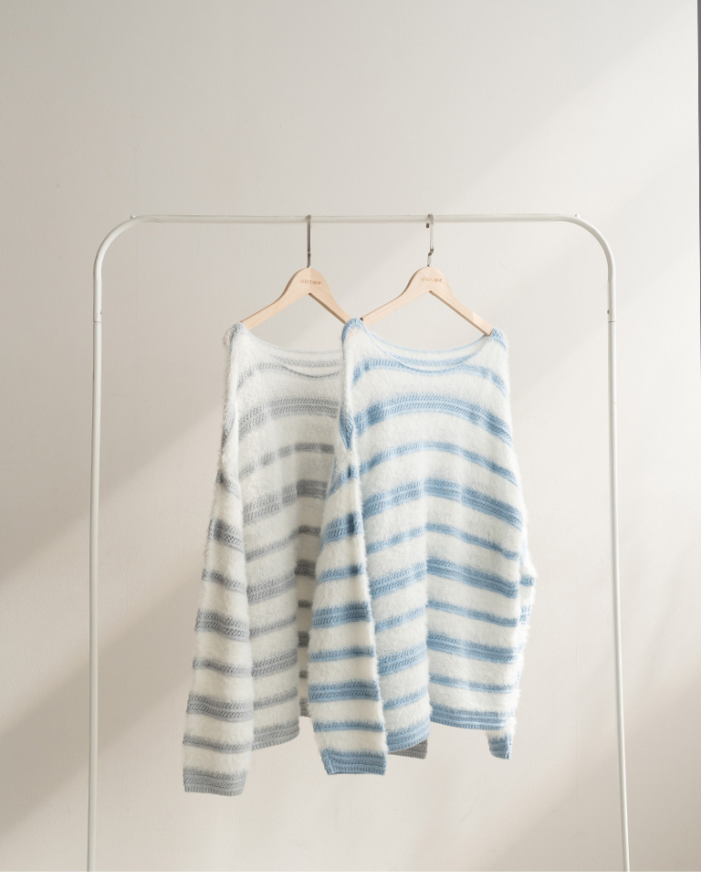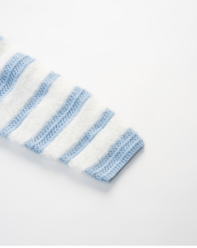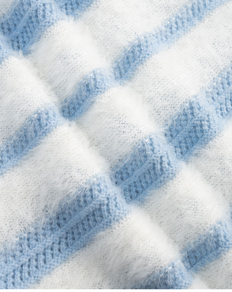 配色條紋毛絨剪接針織毛衣