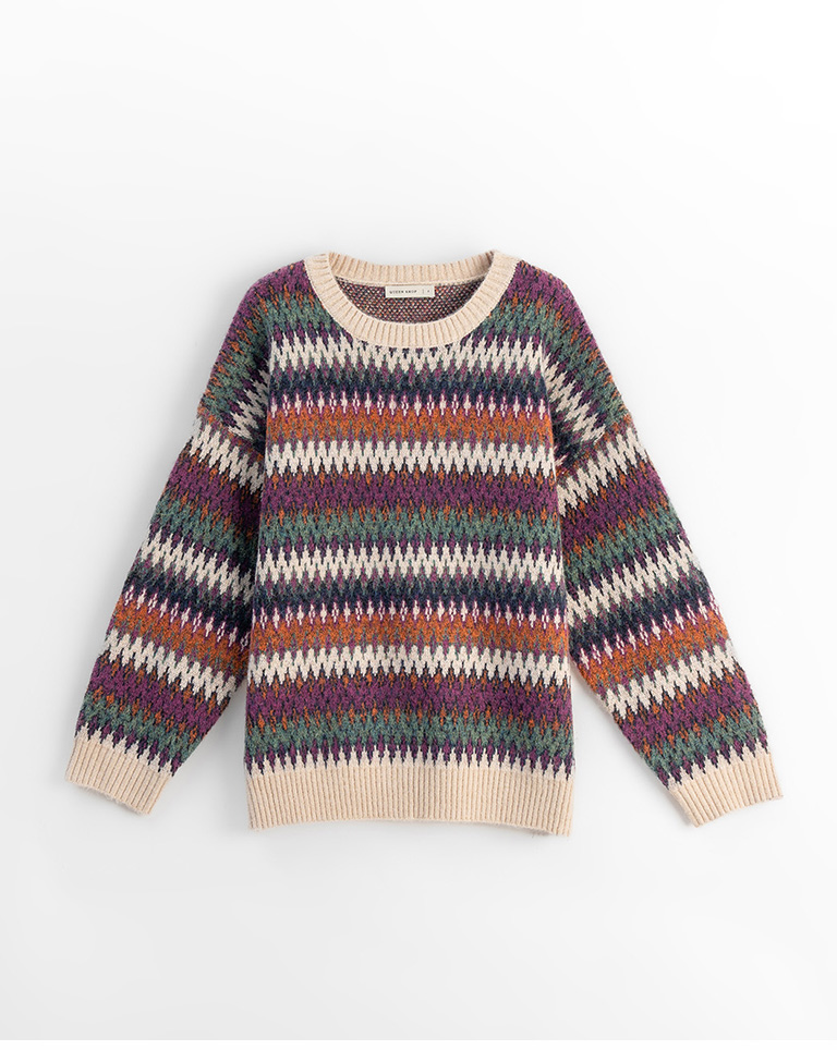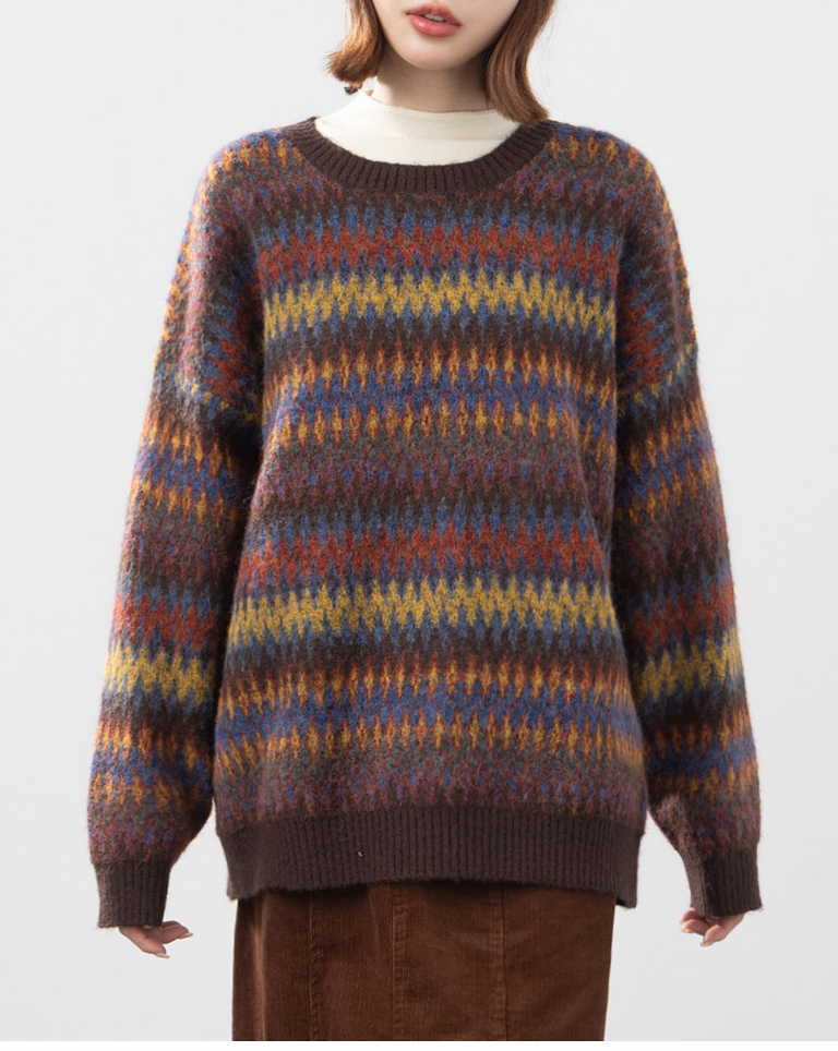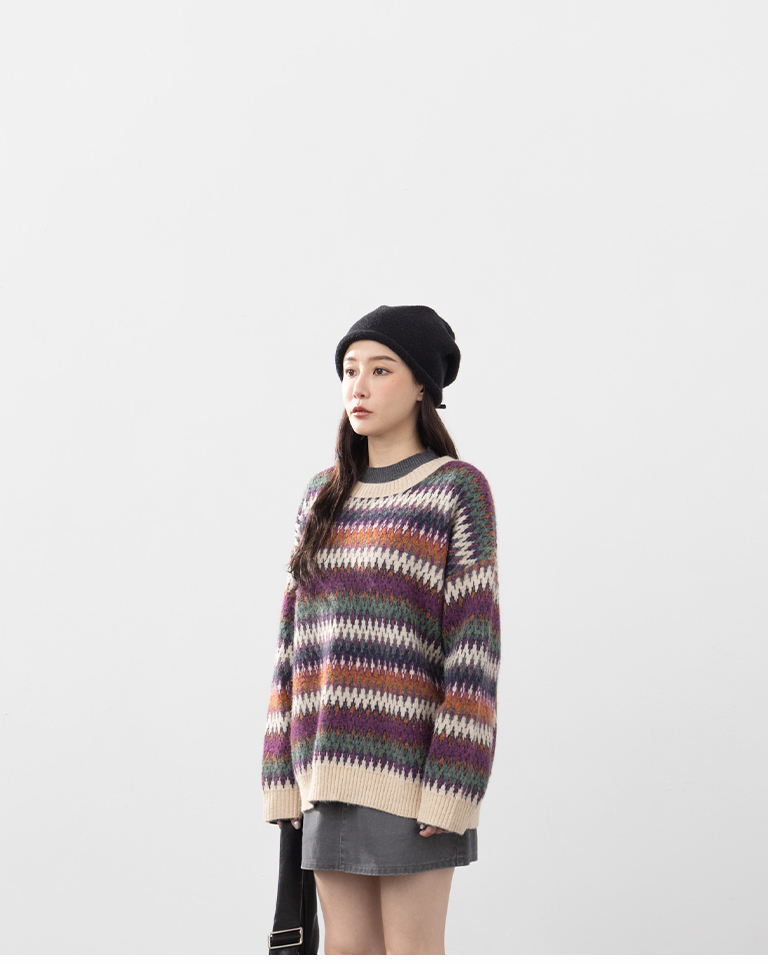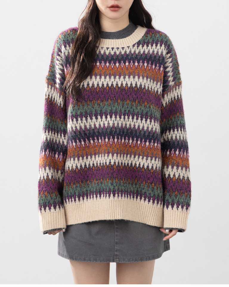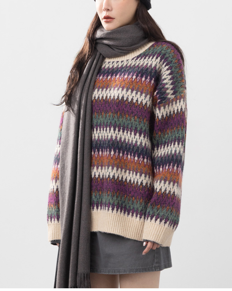 繽紛圖騰設計寬版針織毛衣