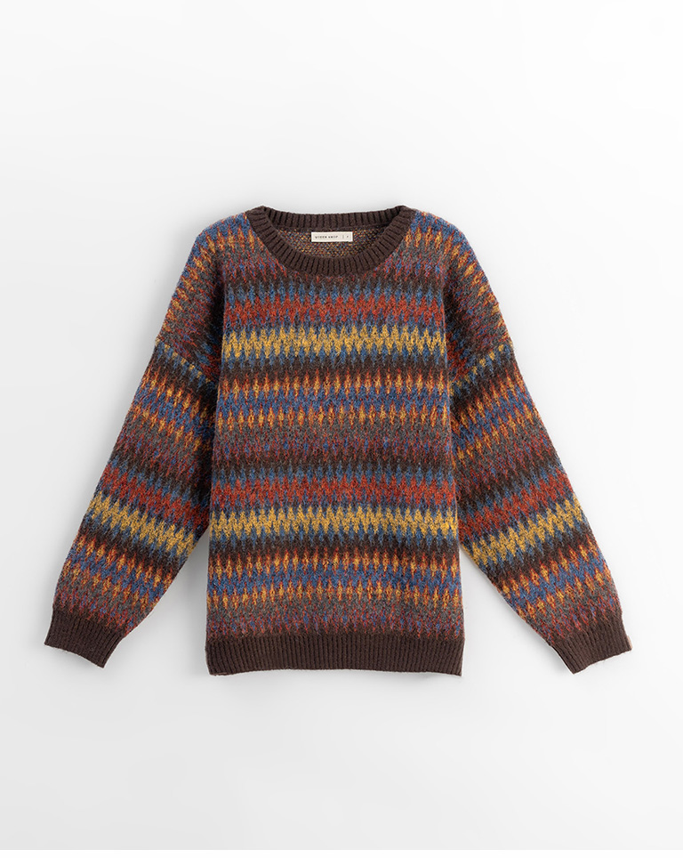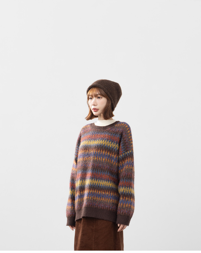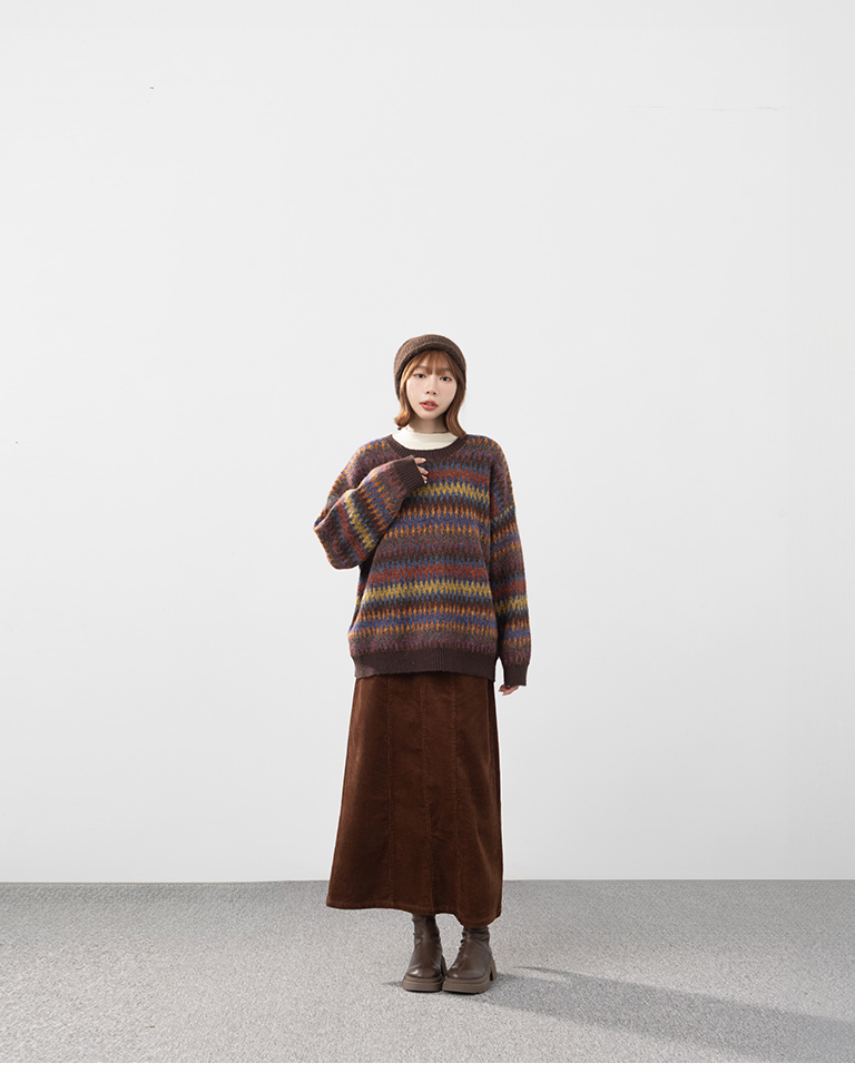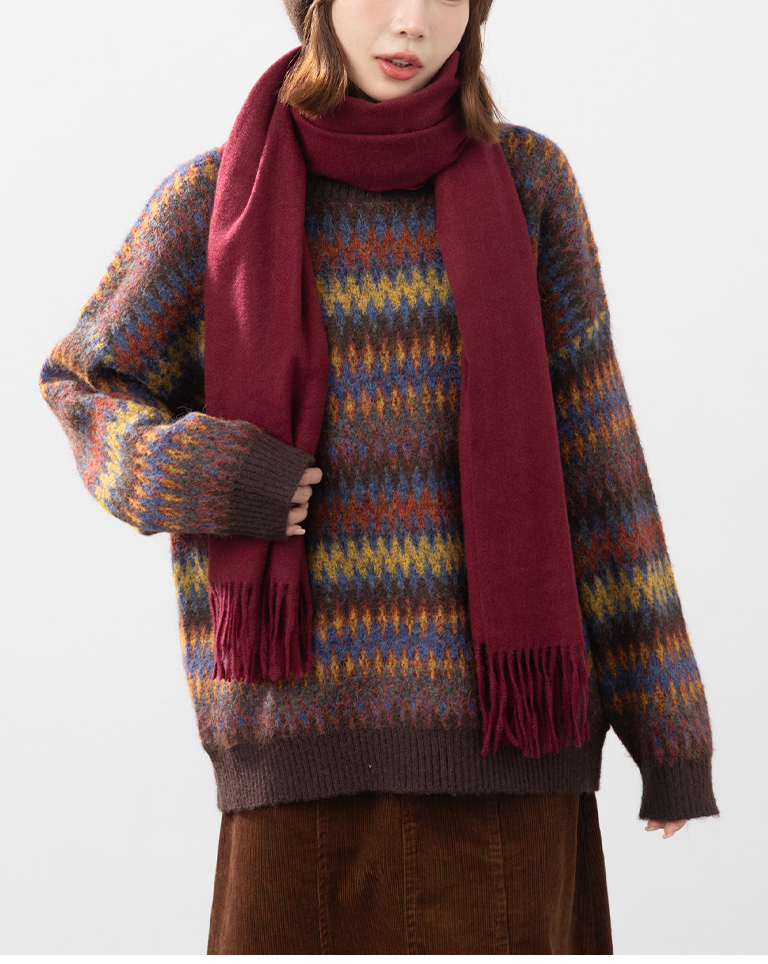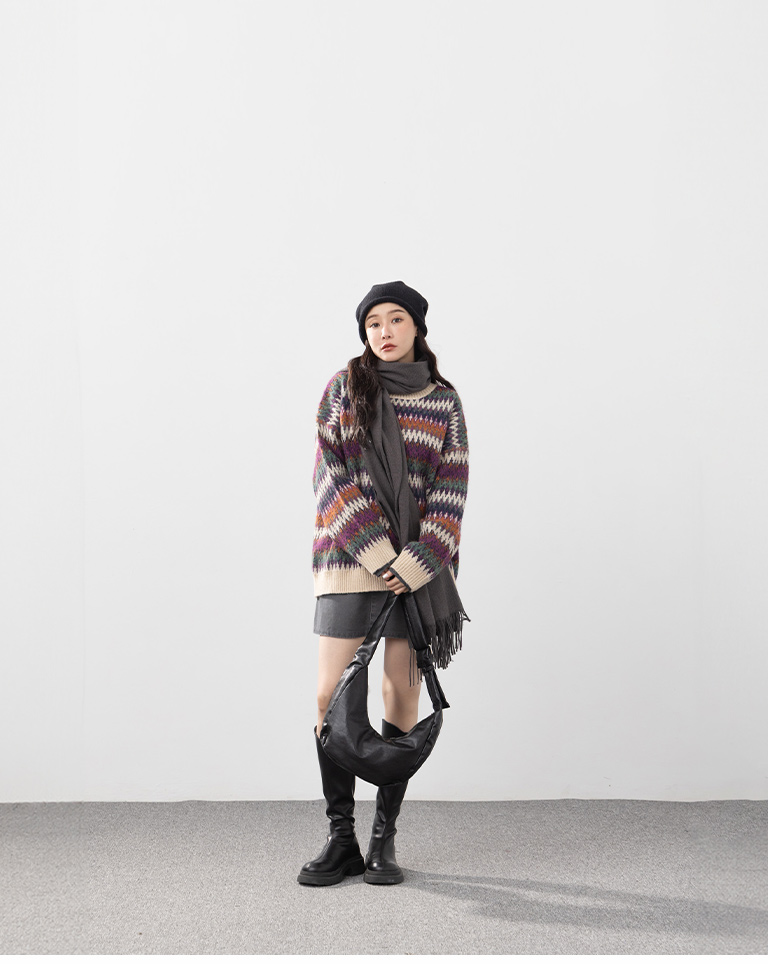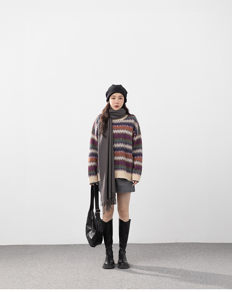 繽紛圖騰設計寬版針織毛衣
