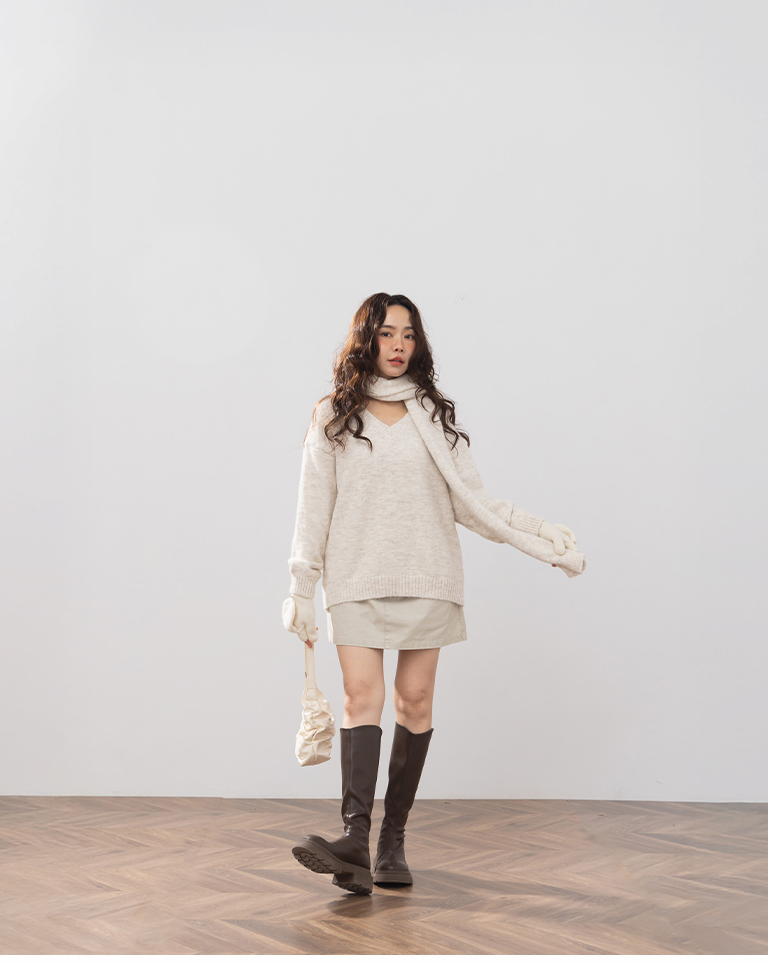 S~L身形實測!分尺寸皺皺木耳邊透膚高領長袖上衣