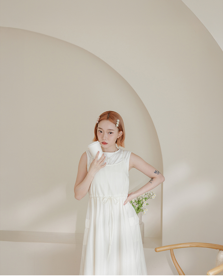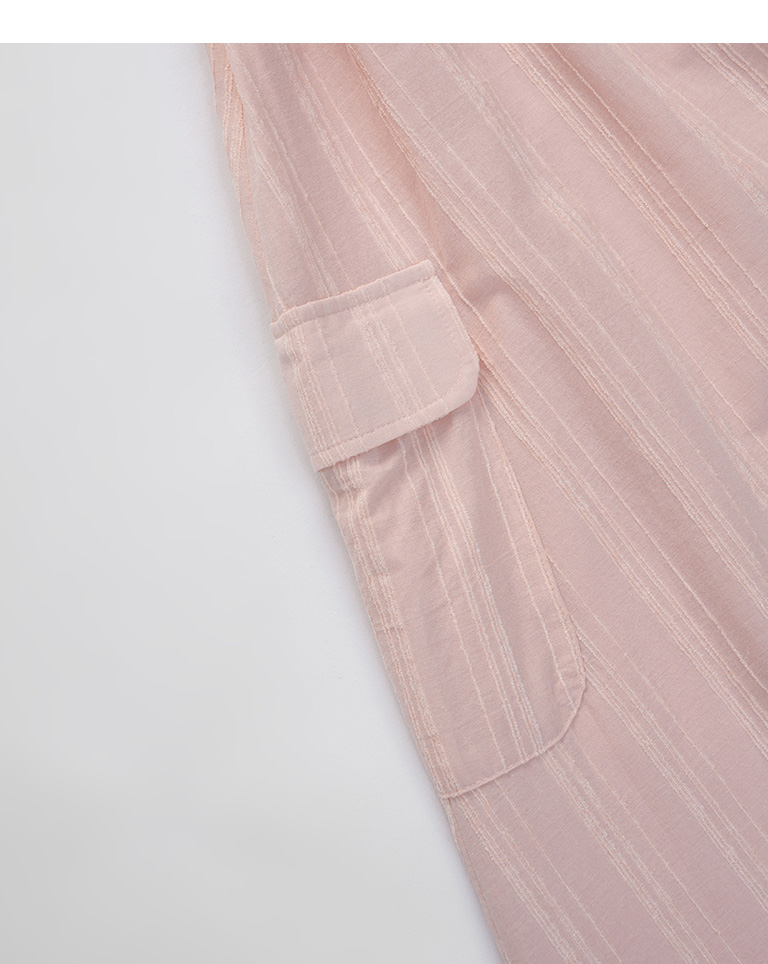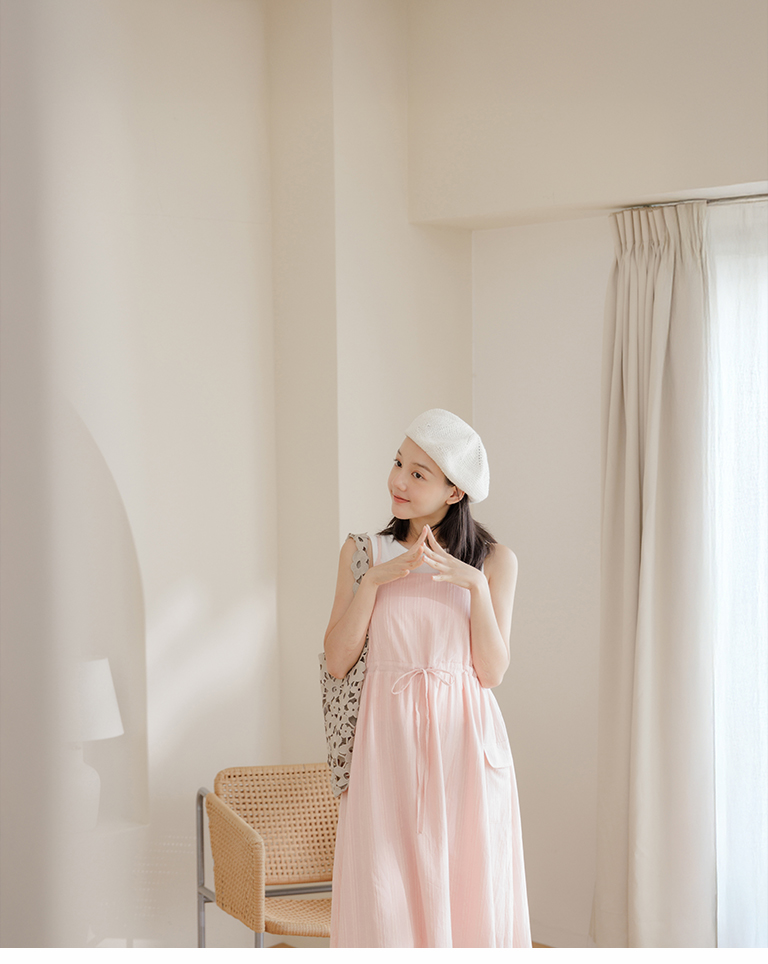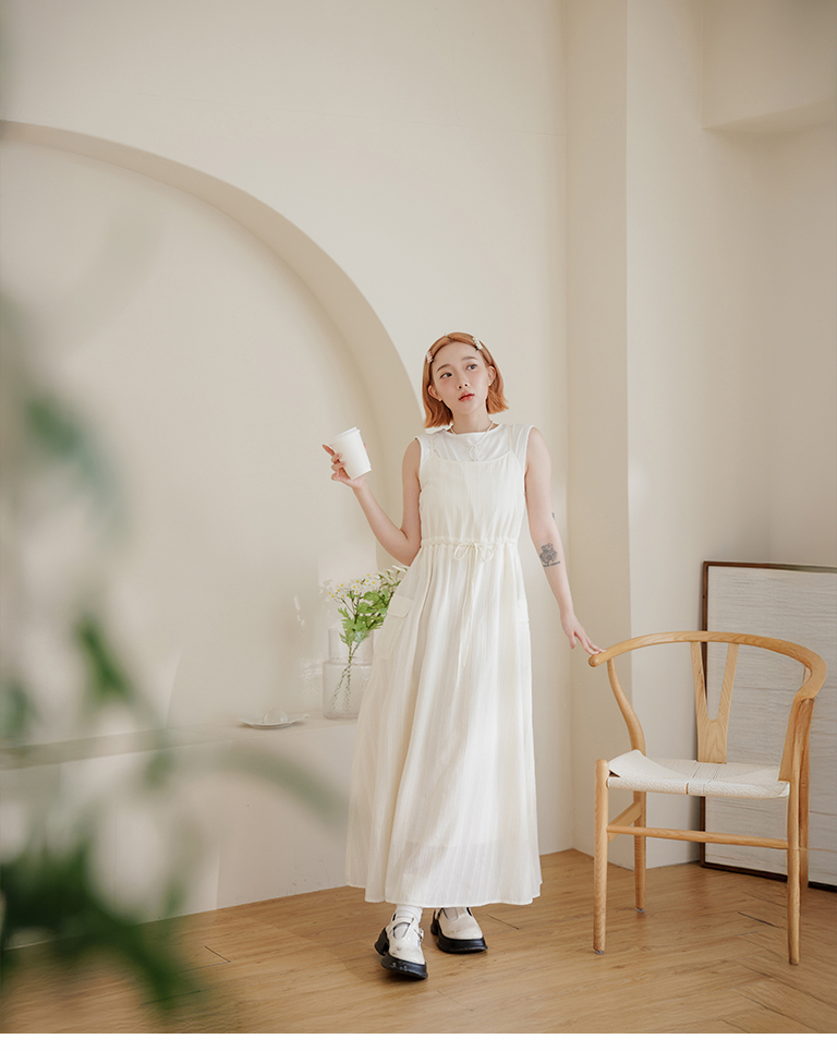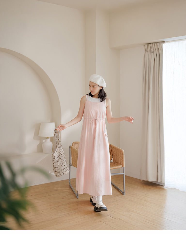 直紋紋理大口袋腰抽繩洋裝 兩色售