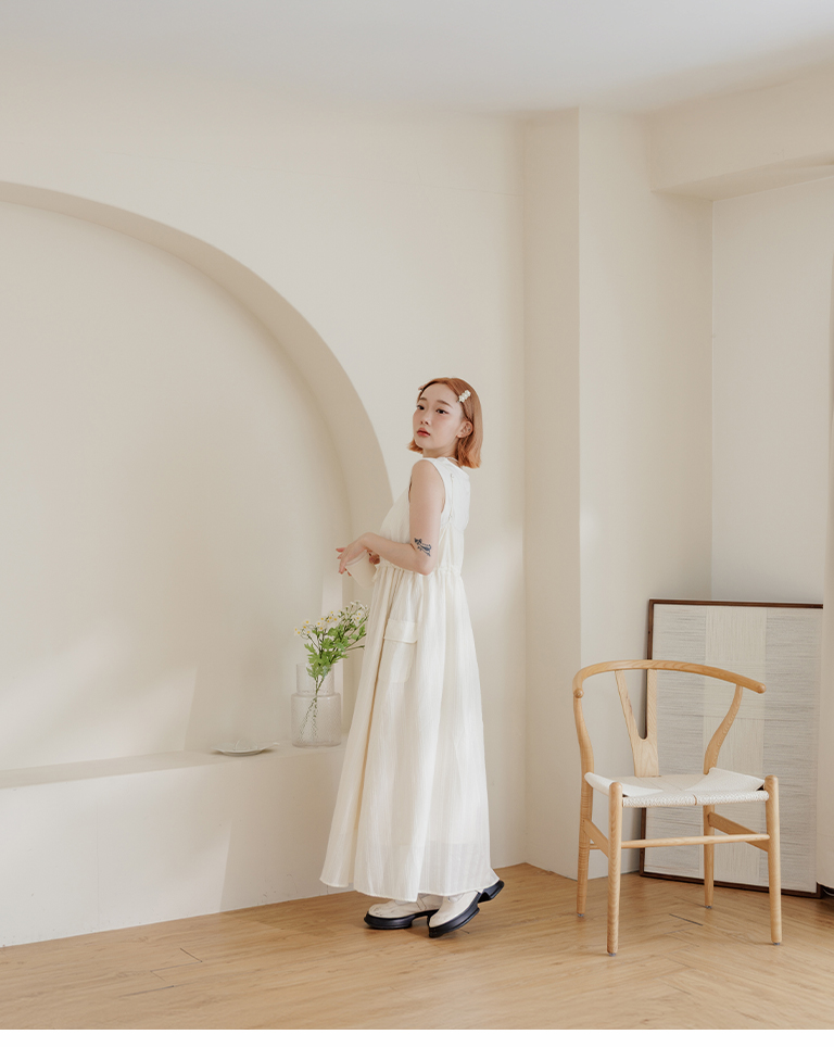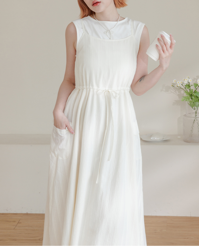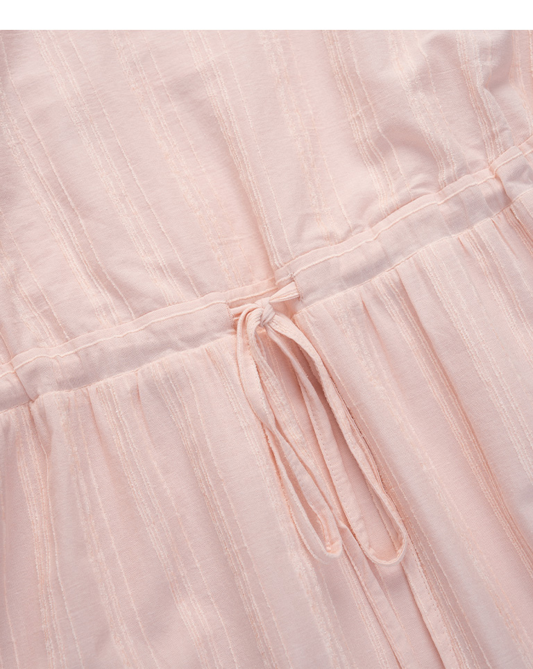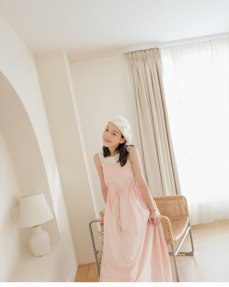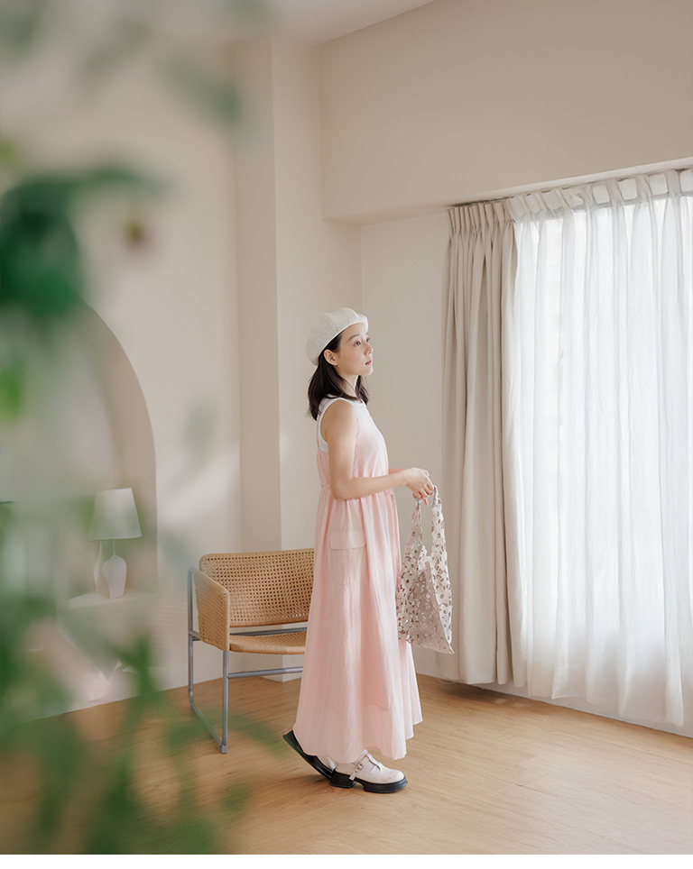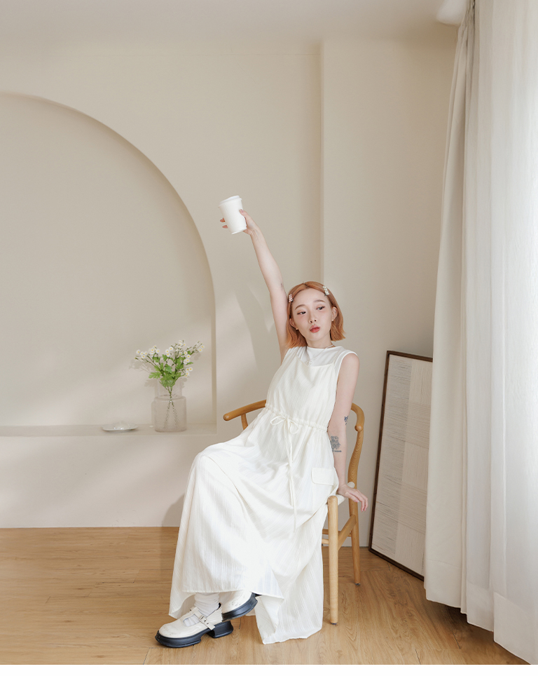 直紋紋理大口袋腰抽繩洋裝 兩色售