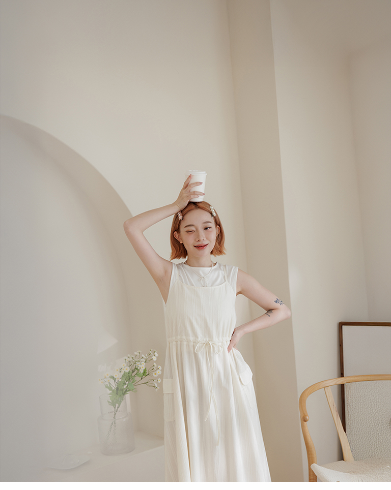 提供給您類似款,為粉色洋裝搭配的背心,一樣有白色款【01150441 立體紋理素面削肩背心 五色售】,提供給您參考,謝謝您。