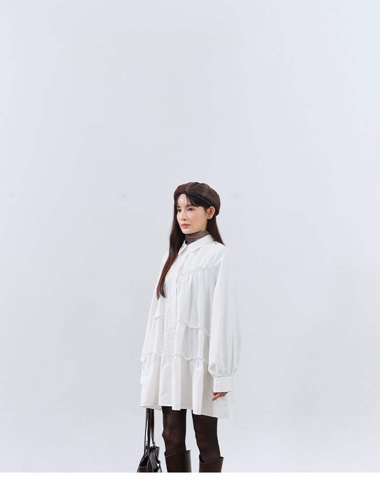 傘襬版型修飾身形 蓬袖設計增添少女感