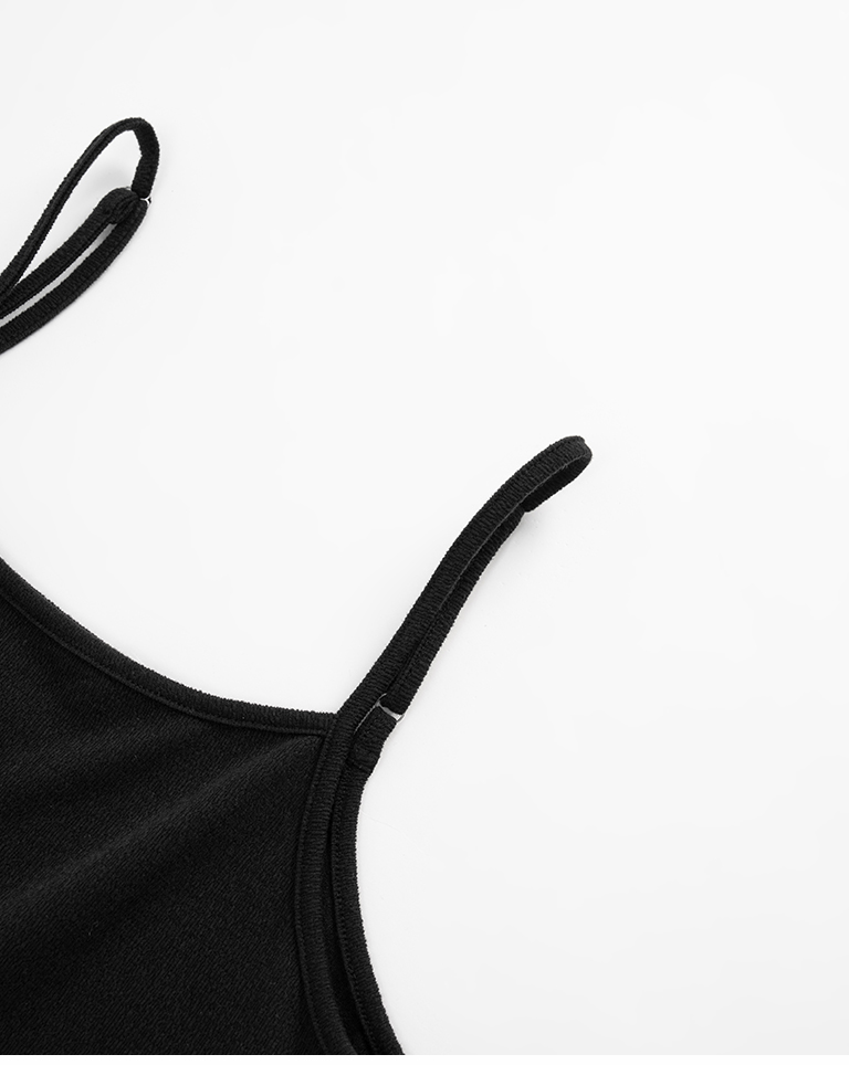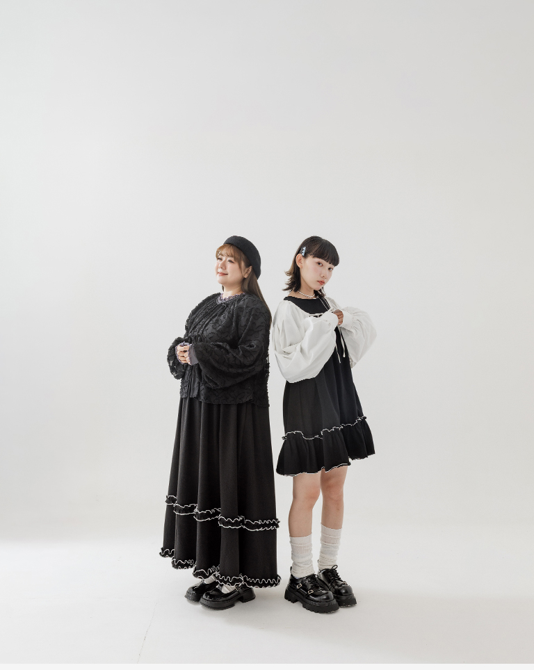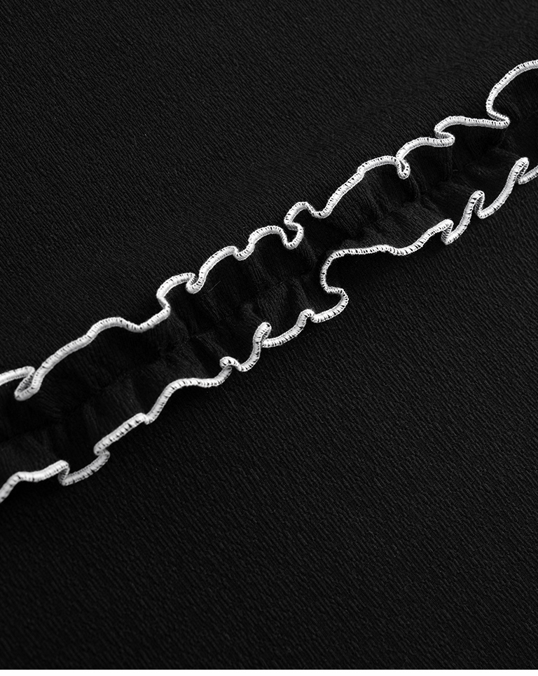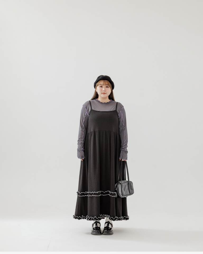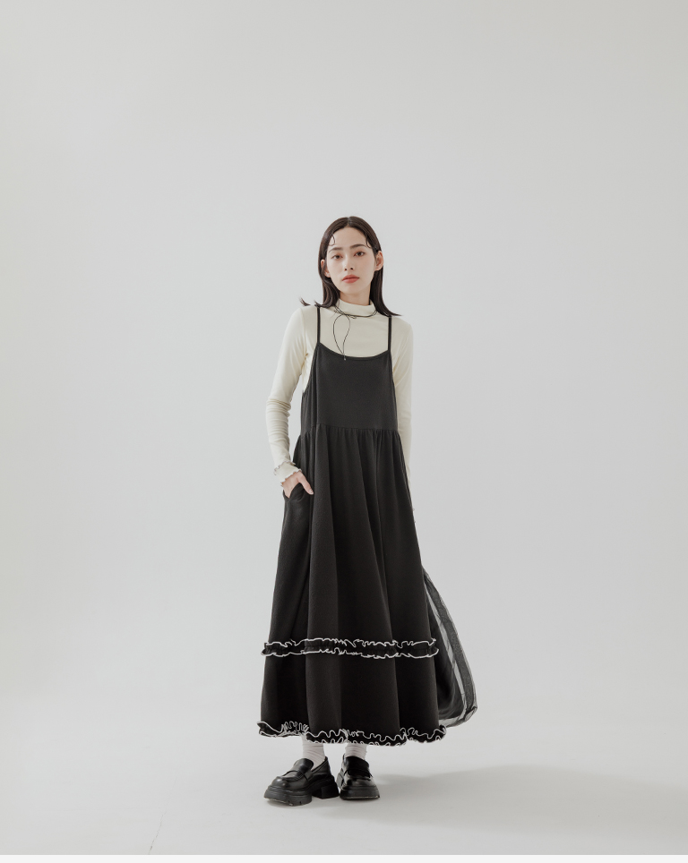 棉花糖 撞色木耳邊傘襬細肩長洋裝