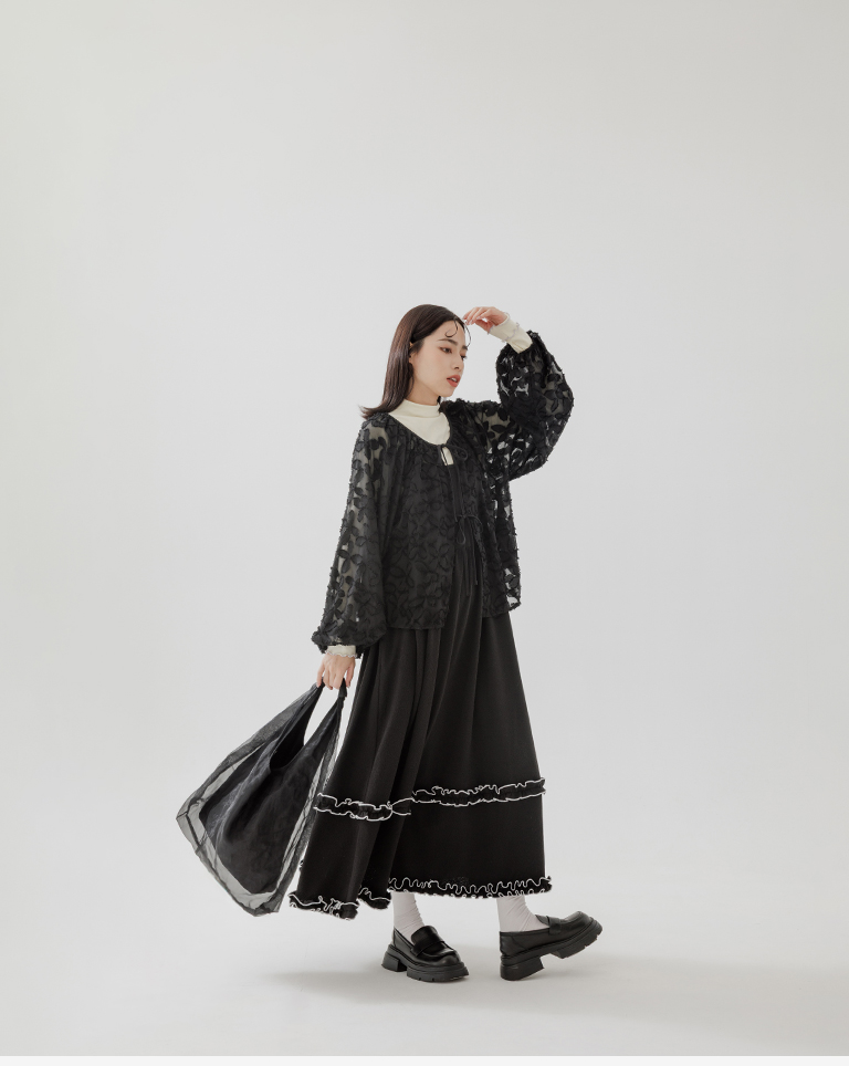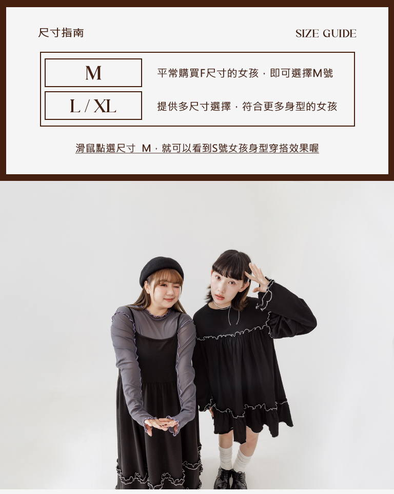 S~L身形實測!分尺寸皺皺木耳邊透膚高領長袖上衣