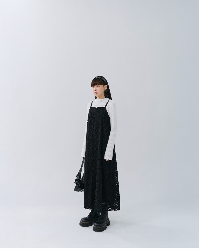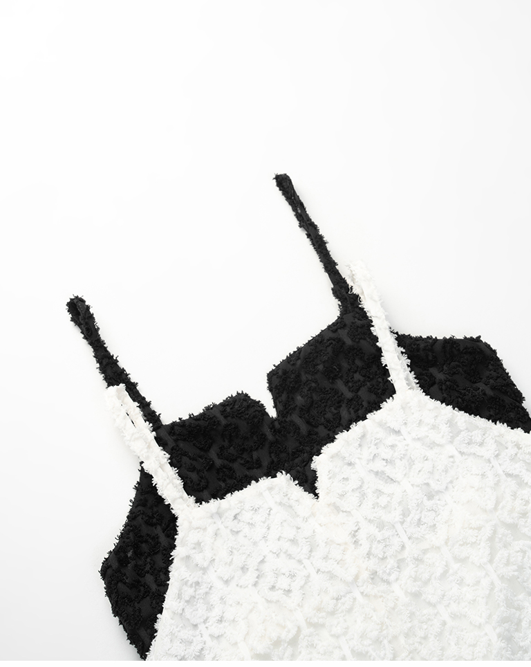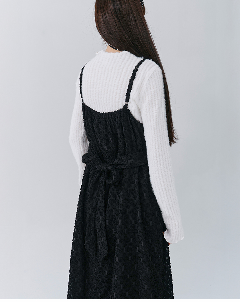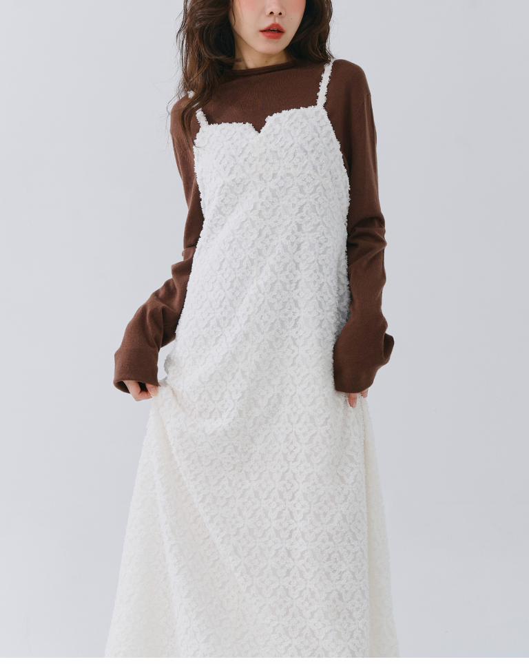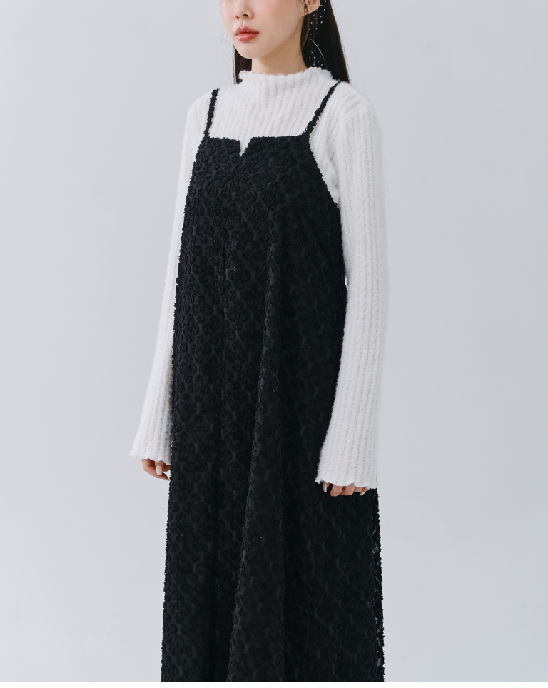 質感立體絨毛紋理細肩長洋裝 兩色售