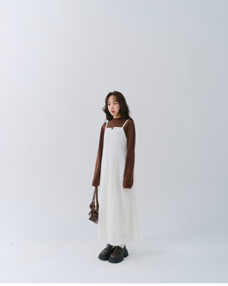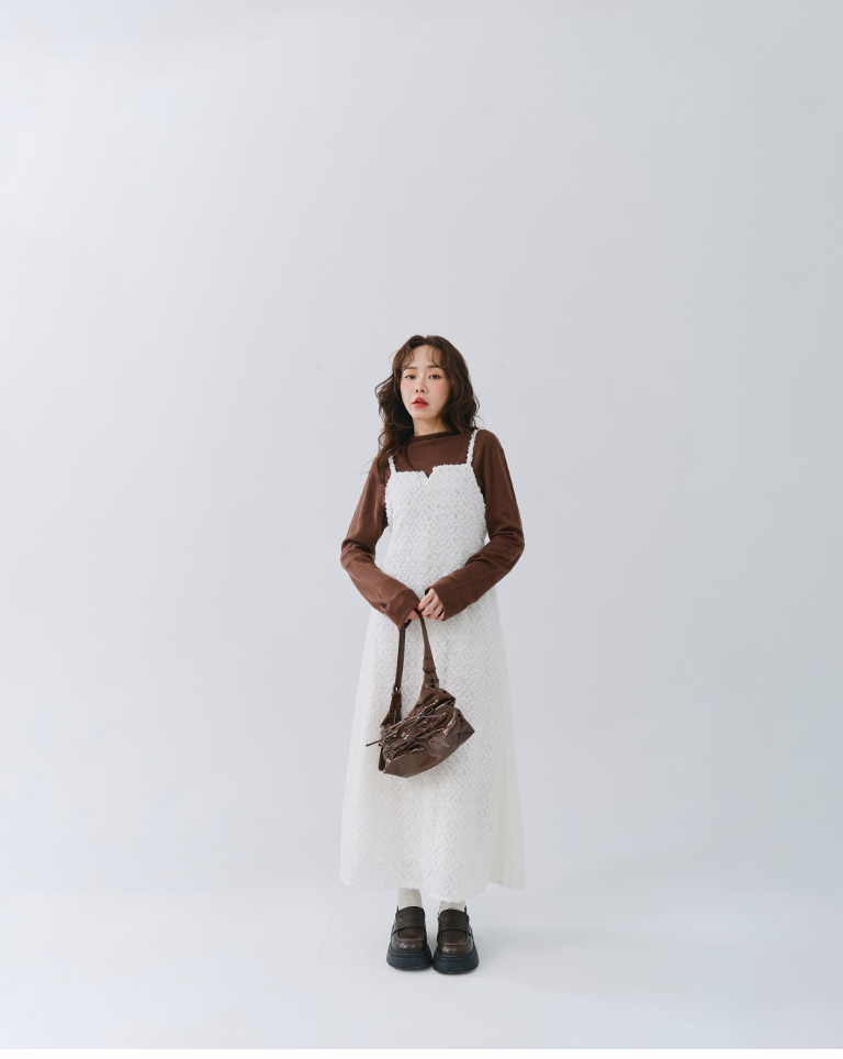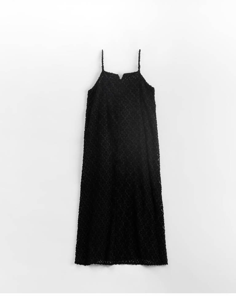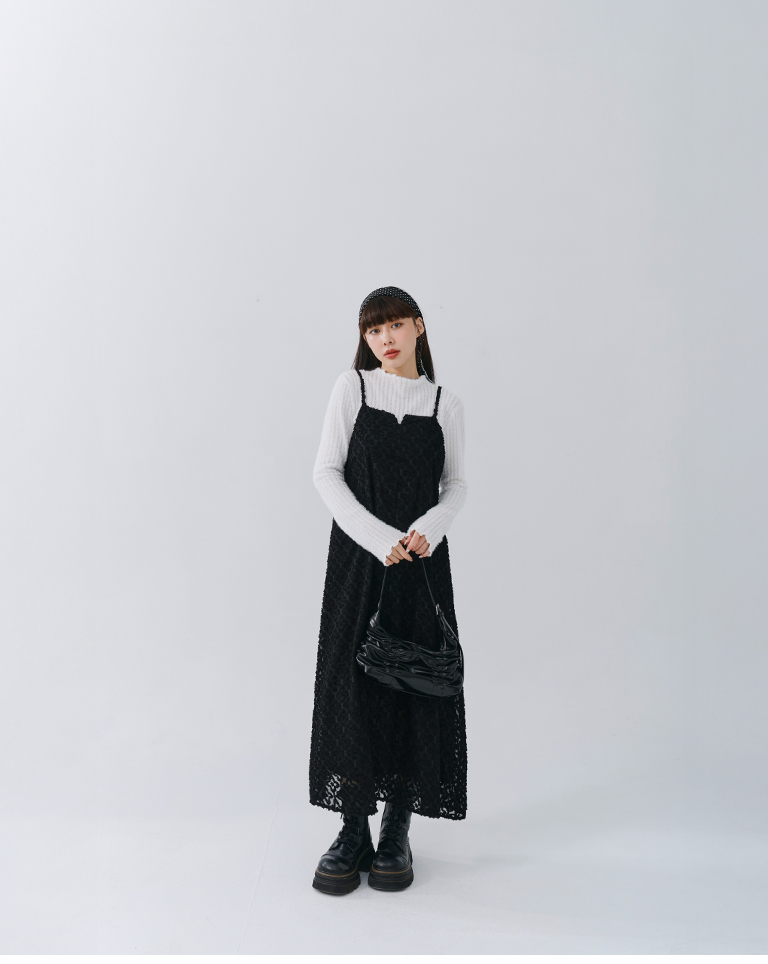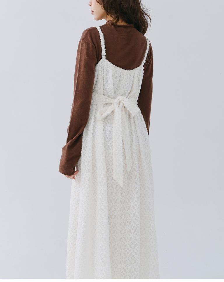 質感立體絨毛紋理細肩長洋裝 兩色售