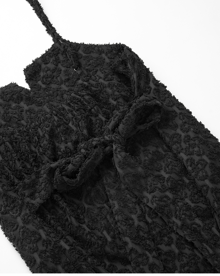 質感立體絨毛紋理細肩長洋裝