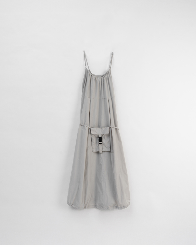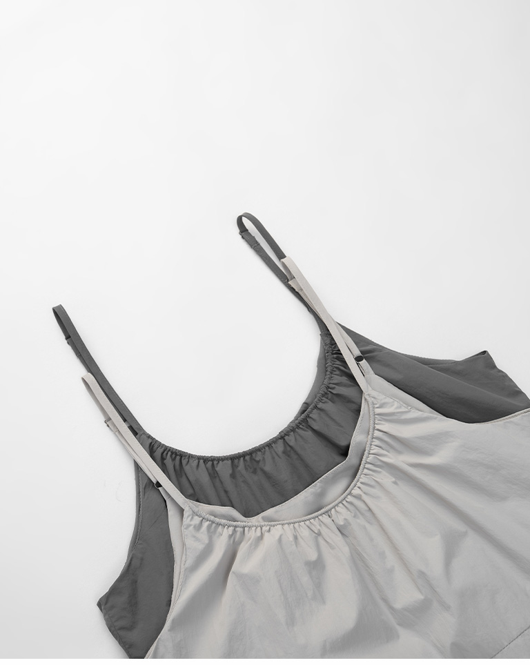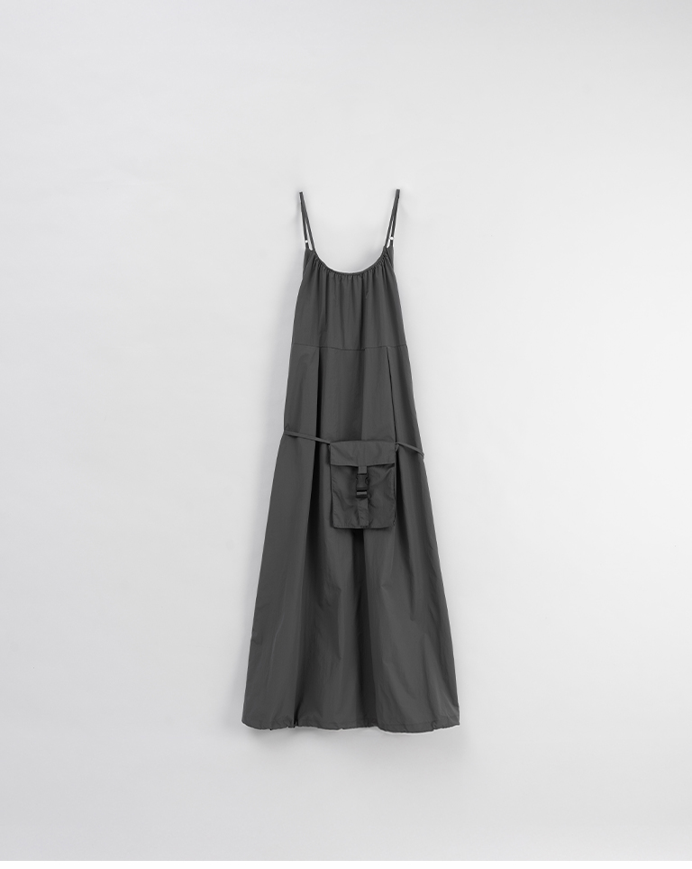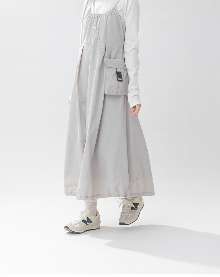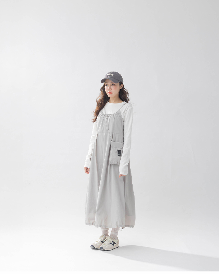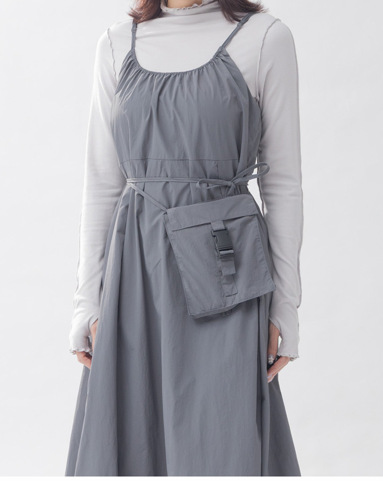 附小包工裝抽繩細肩長洋裝