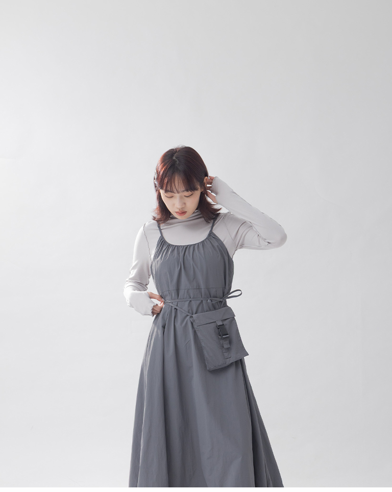 下擺抽繩造型 可自由改變洋裝輪廓