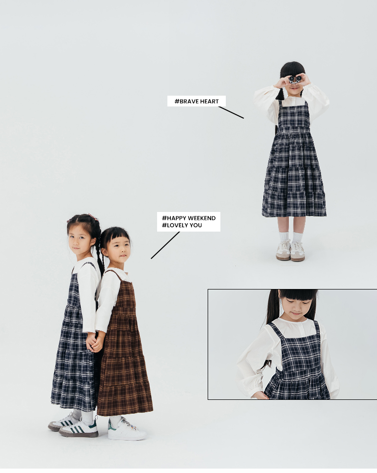 童裝 親子系列 格紋兩穿洋裝 兩色售 M-XL