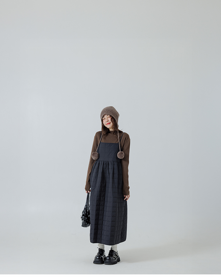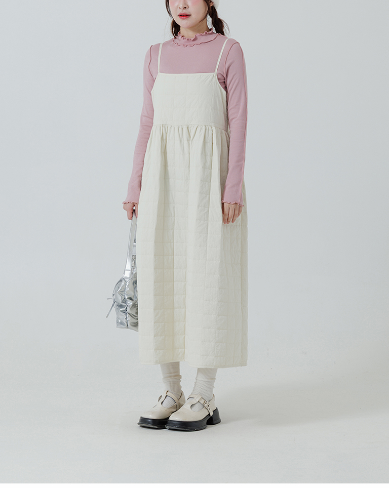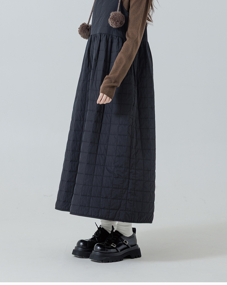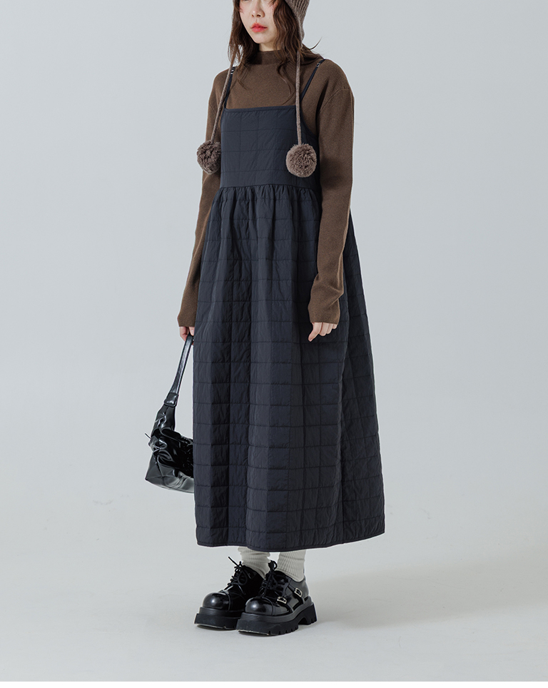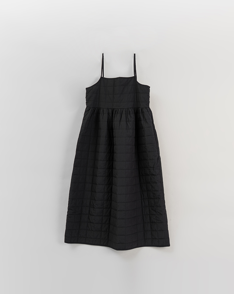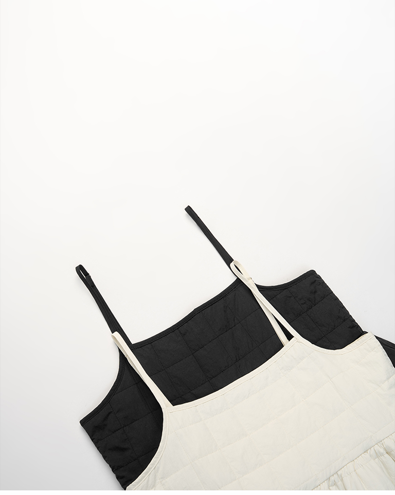 衍縫鋪棉造型細肩長洋裝