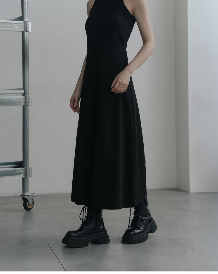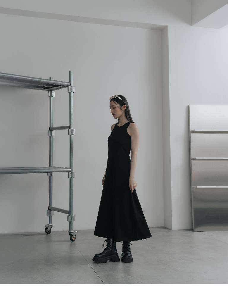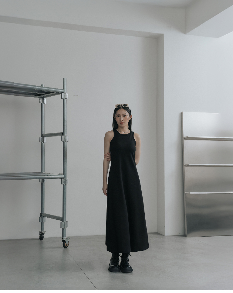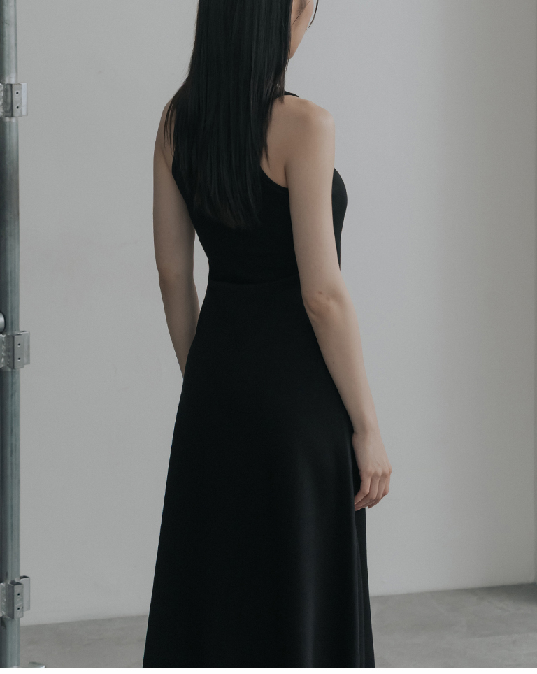 削肩造型附Bra合身背心洋裝-黑 S/M