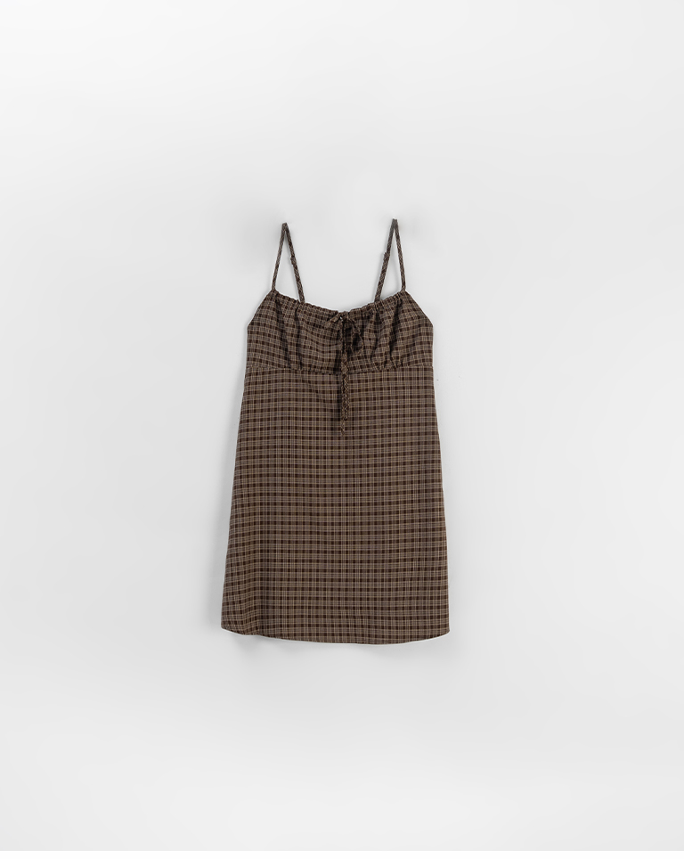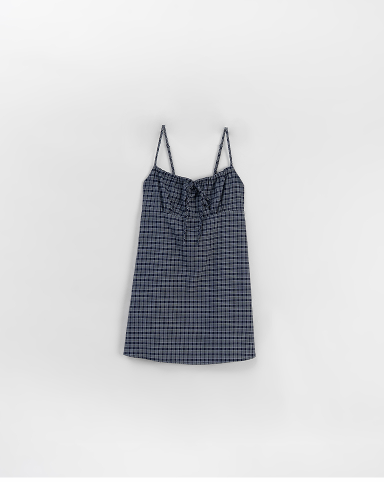 格紋蝴蝶結綁帶設計細肩短洋裝 兩色售S/M