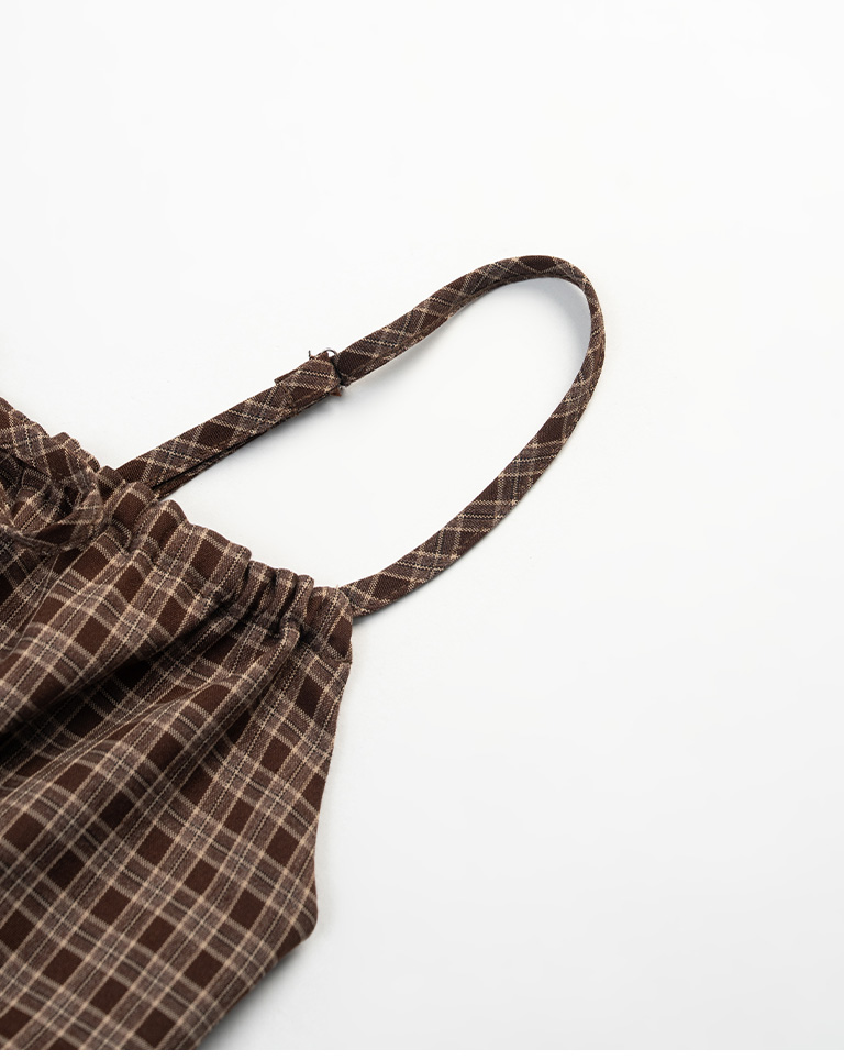 格紋蝴蝶結綁帶設計細肩短洋裝