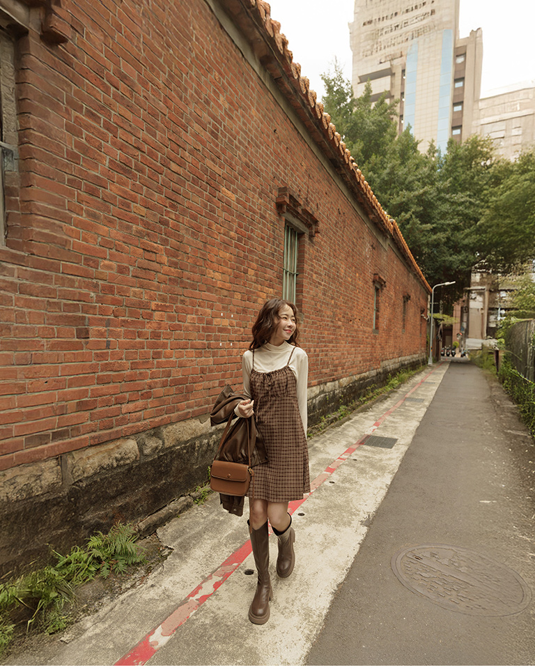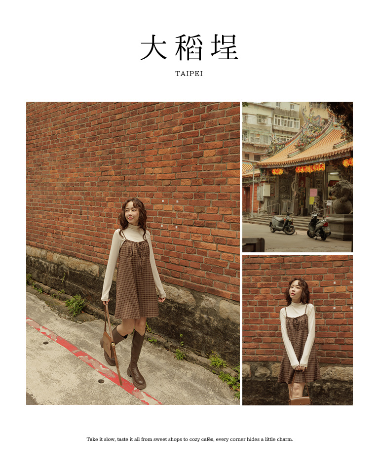 可單穿也可內加打底的一款百搭格紋短洋裝