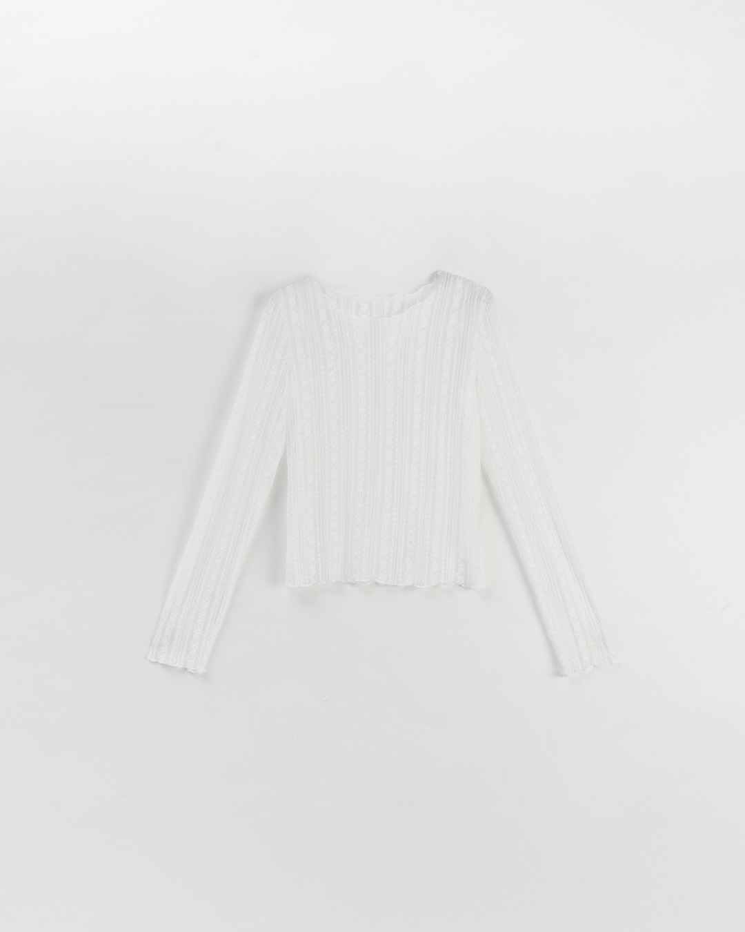 S~L身形實測!分尺寸皺皺木耳邊透膚高領長袖上衣