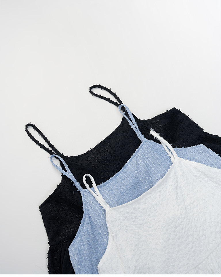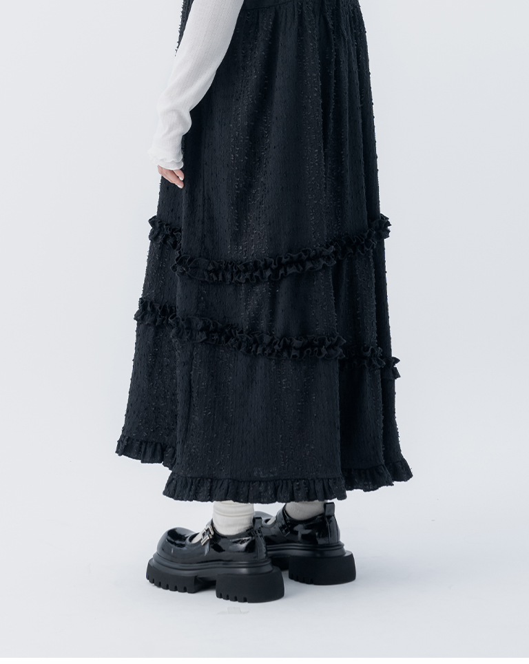 立體緹花荷葉邊綁帶長洋裝 三色售