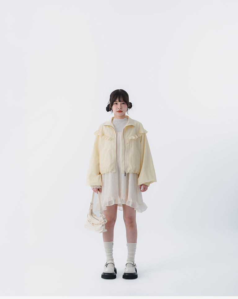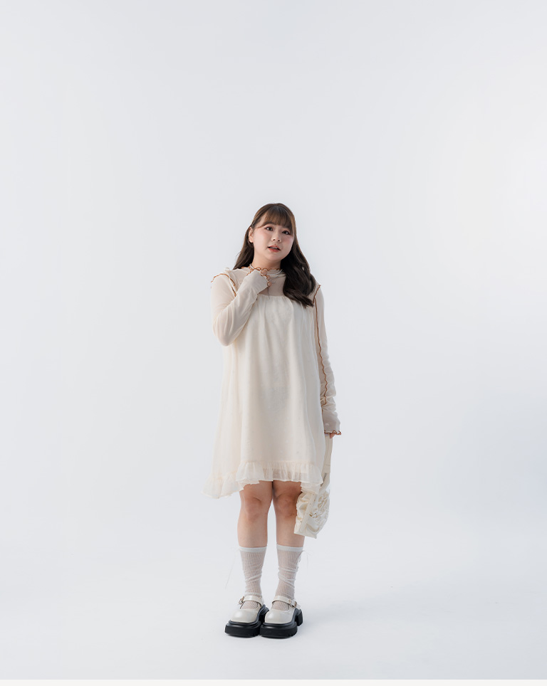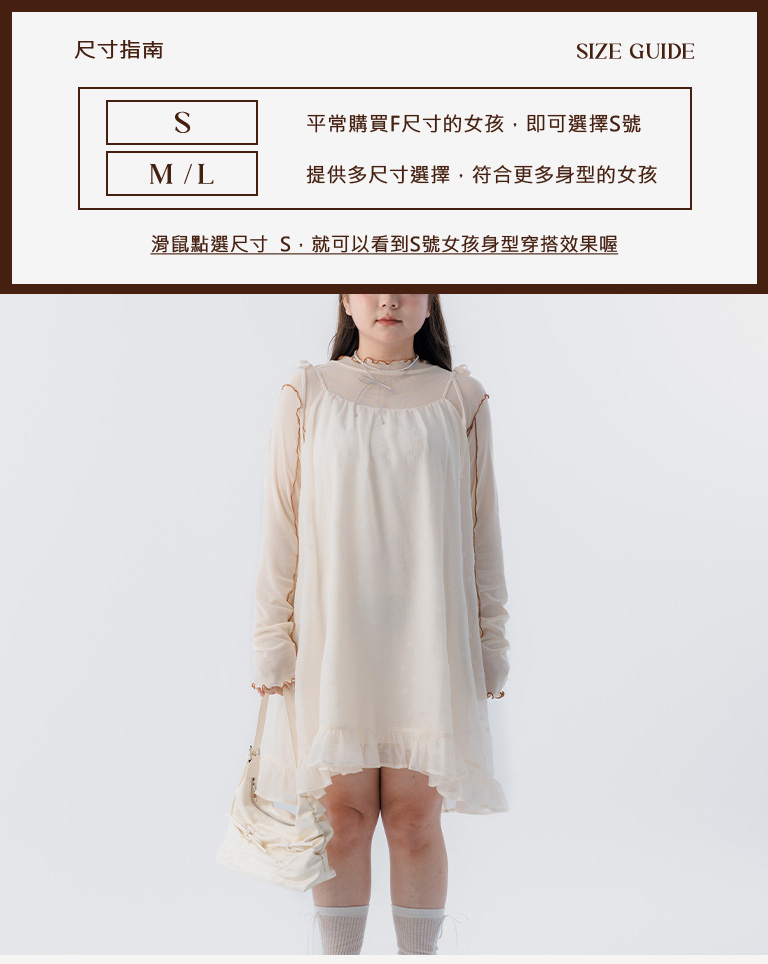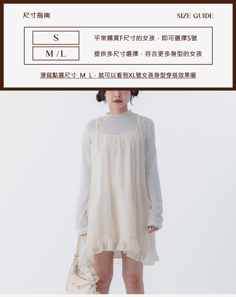 S~L身形實測!分尺寸皺皺木耳邊透膚高領長袖上衣