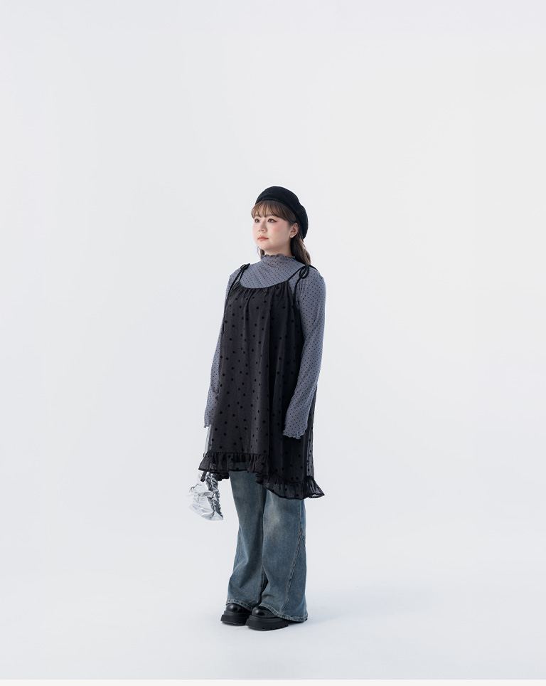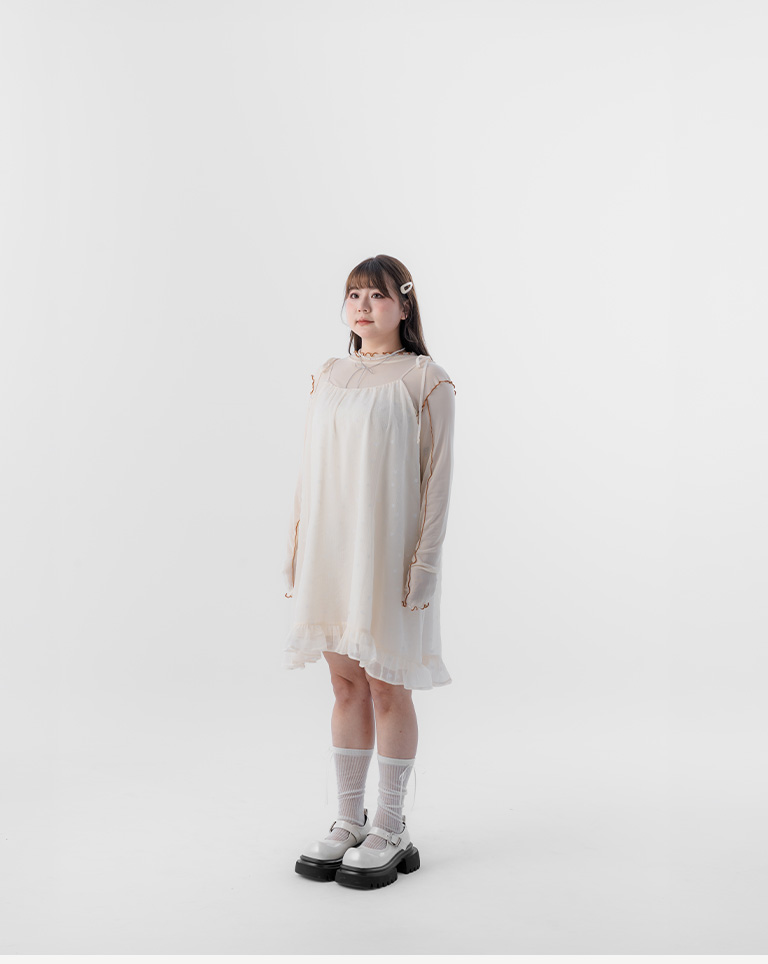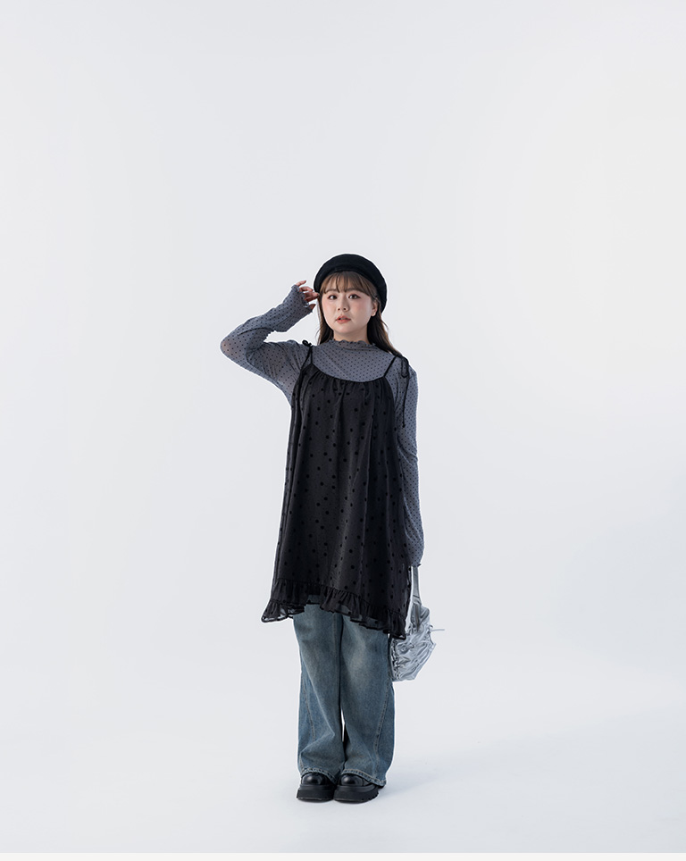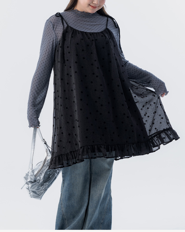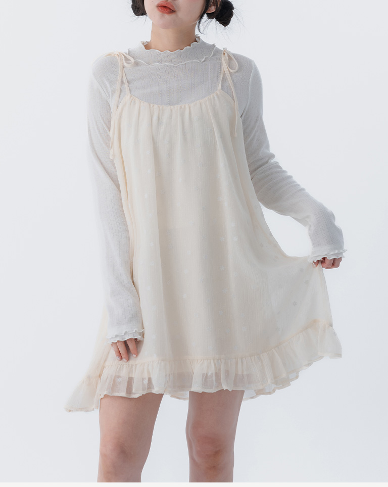 S~L身形實測!分尺寸皺皺木耳邊透膚高領長袖上衣