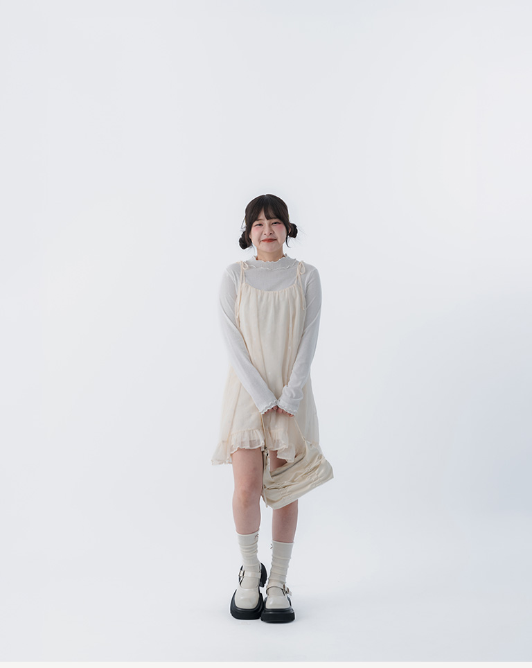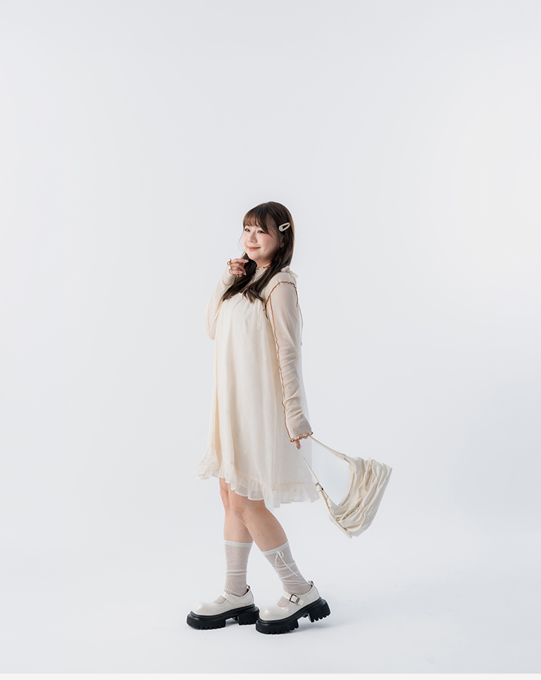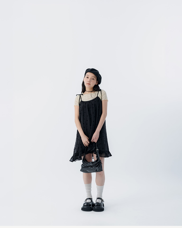 搭配前身綁帶細節點綴 讓造型更顯甜美