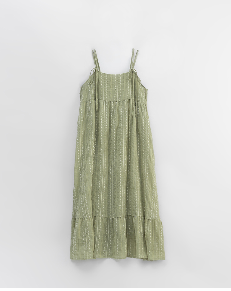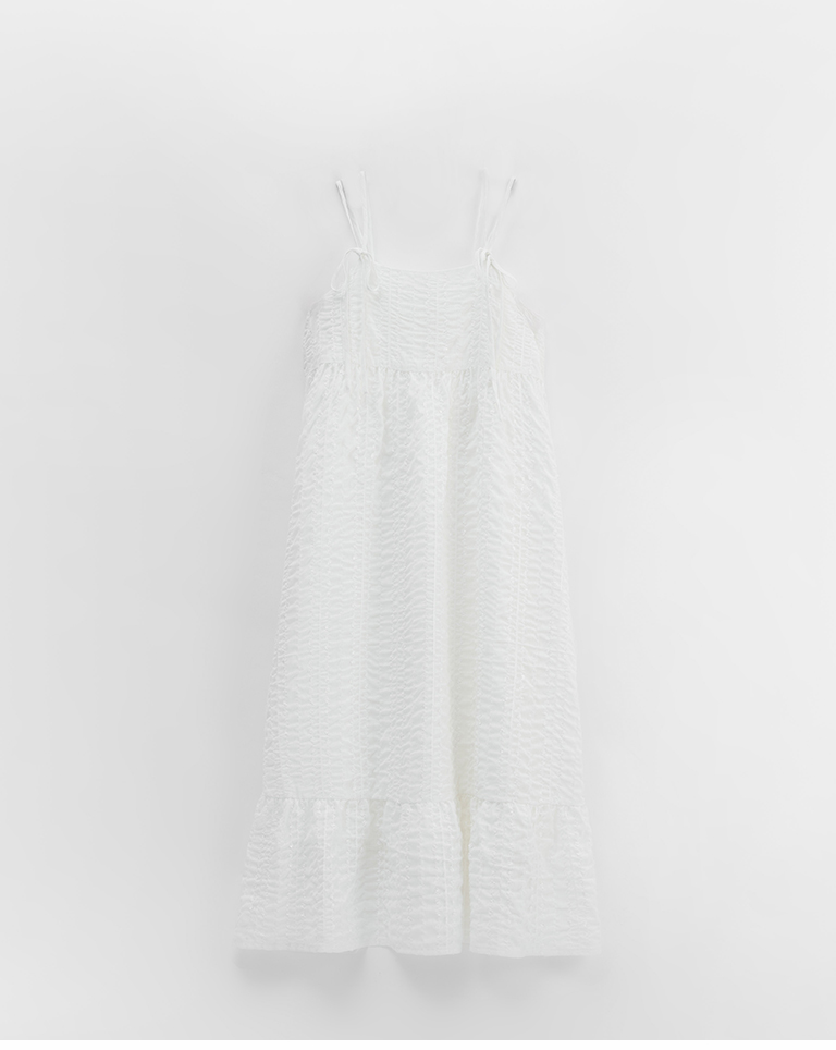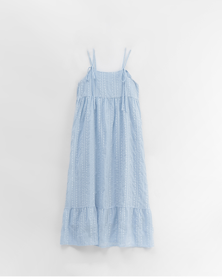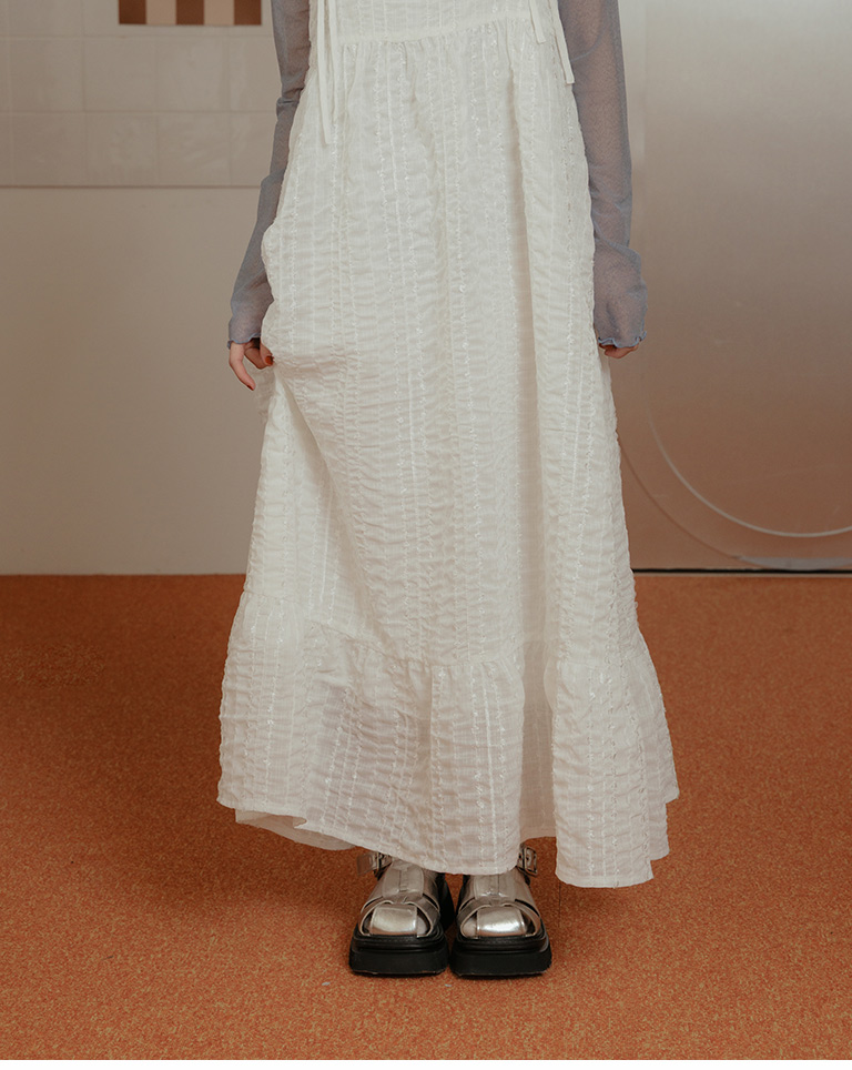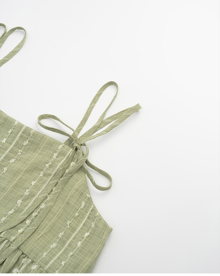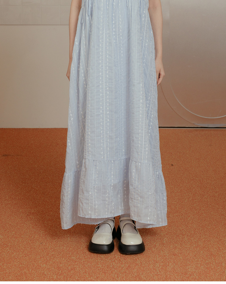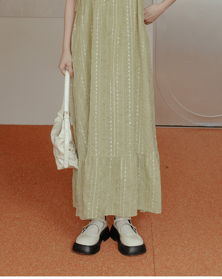 雙綁帶立體花紋細肩長洋裝