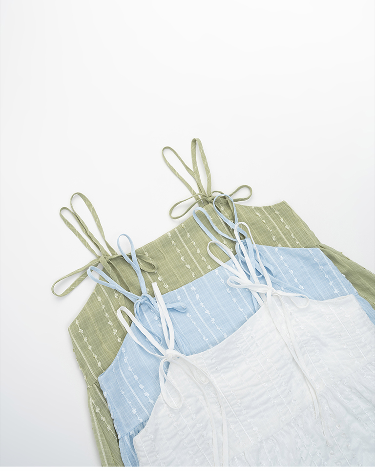 雙綁帶立體花紋細肩長洋裝 三色售