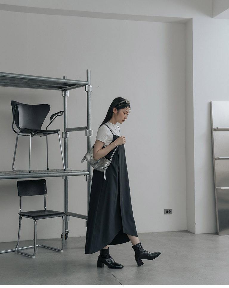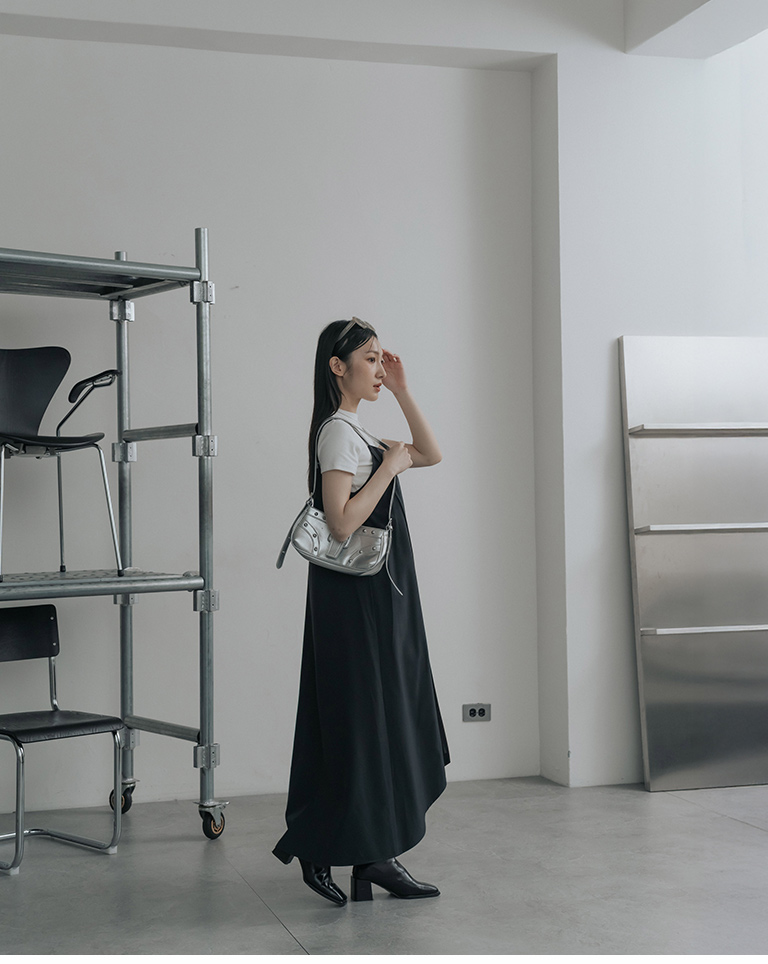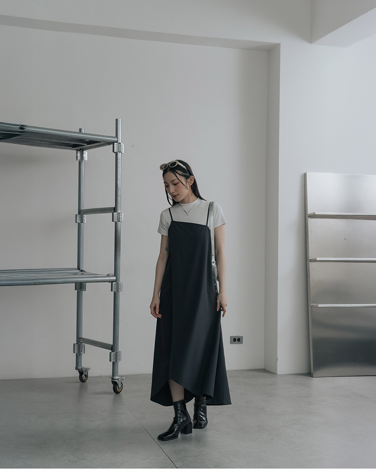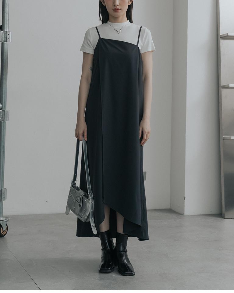 不對稱剪裁細肩長洋裝