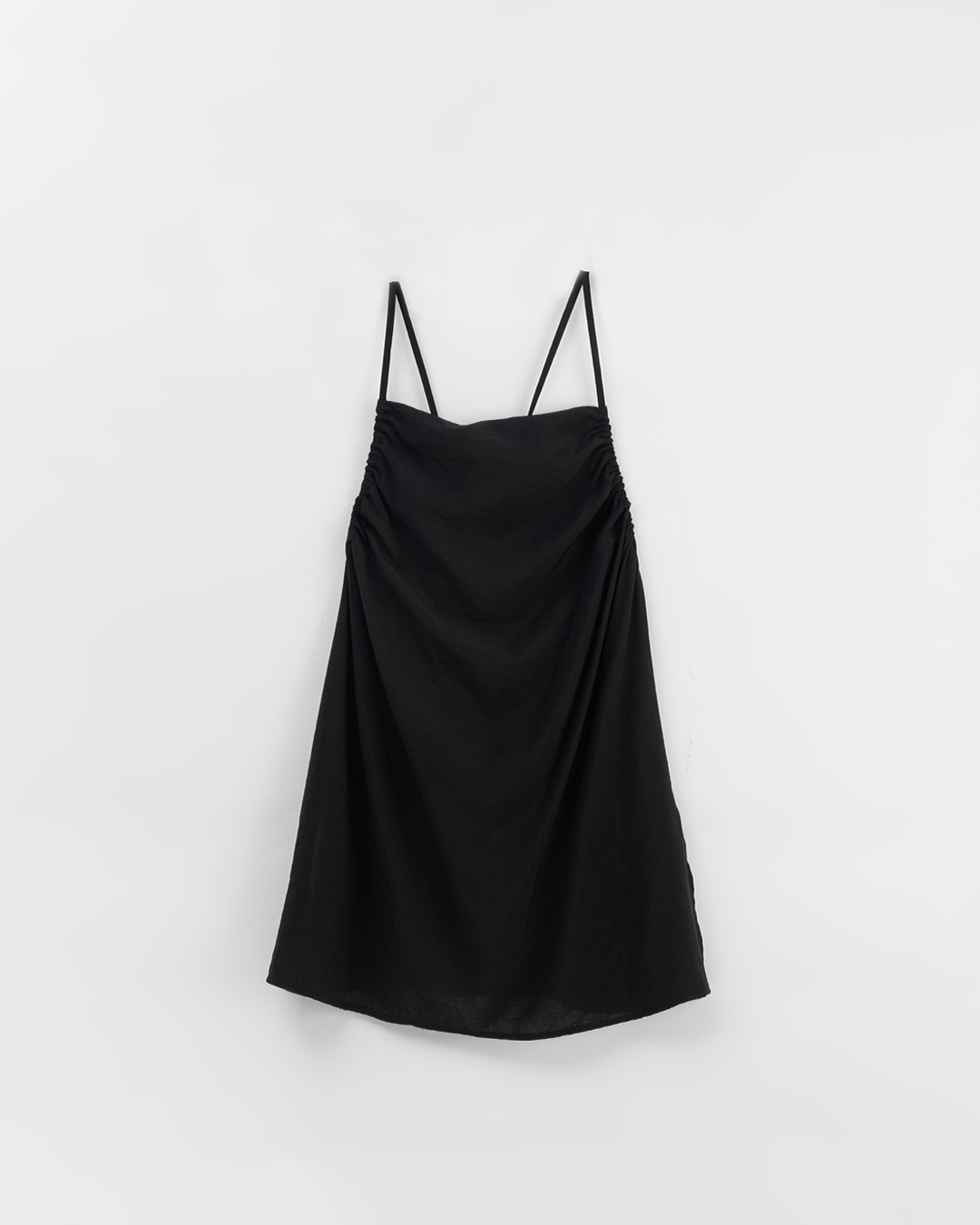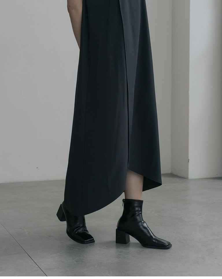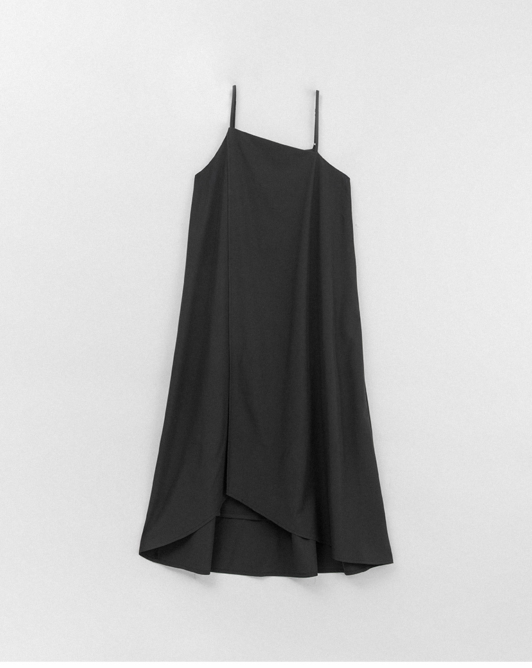 不對稱剪裁細肩長洋裝-深灰