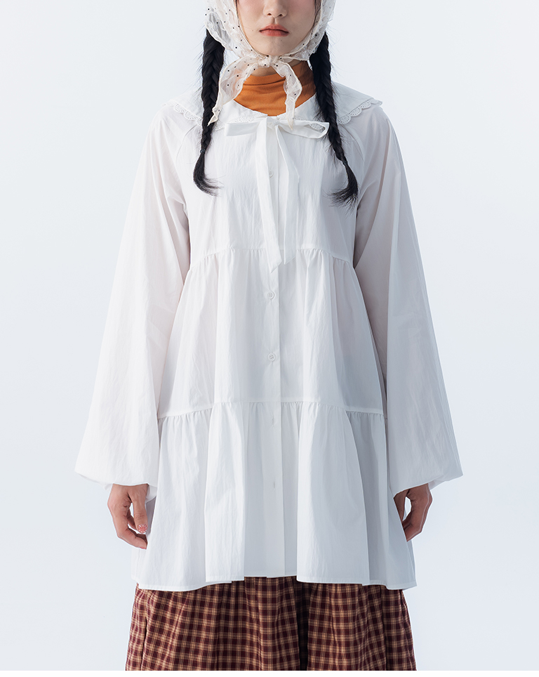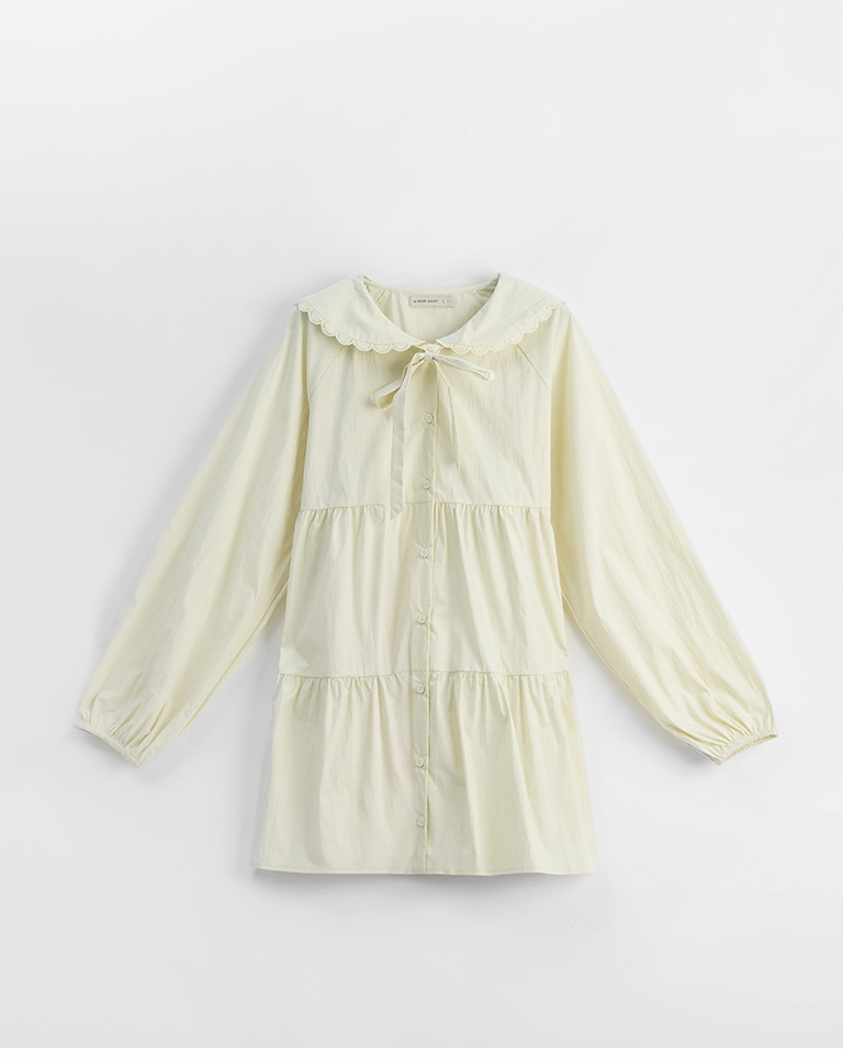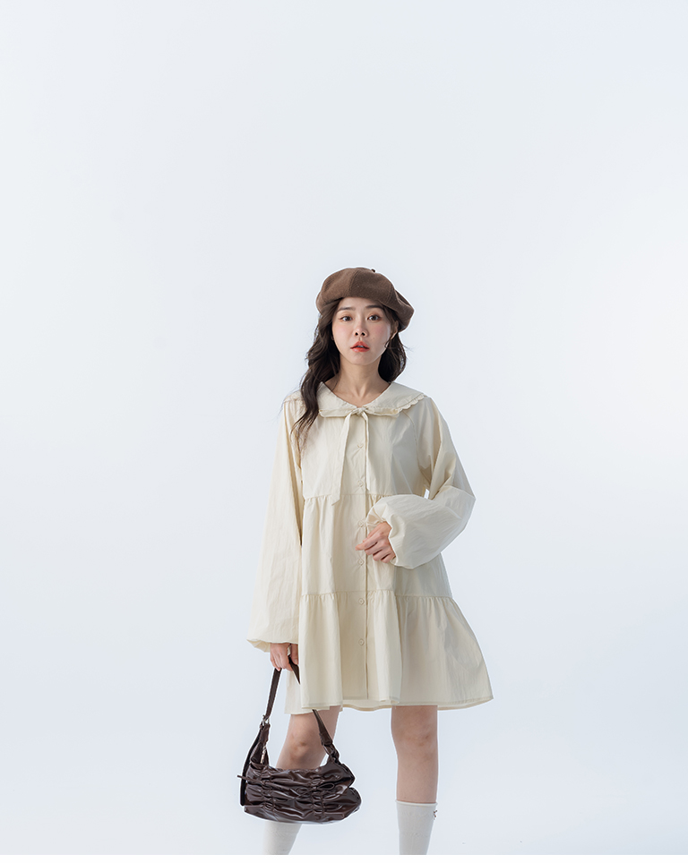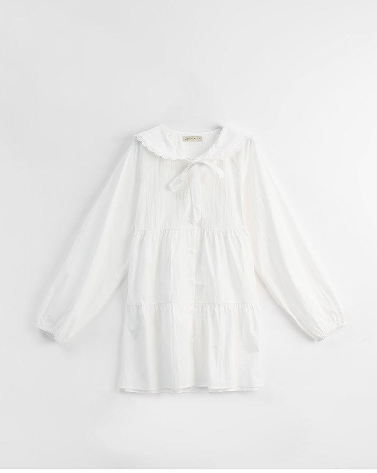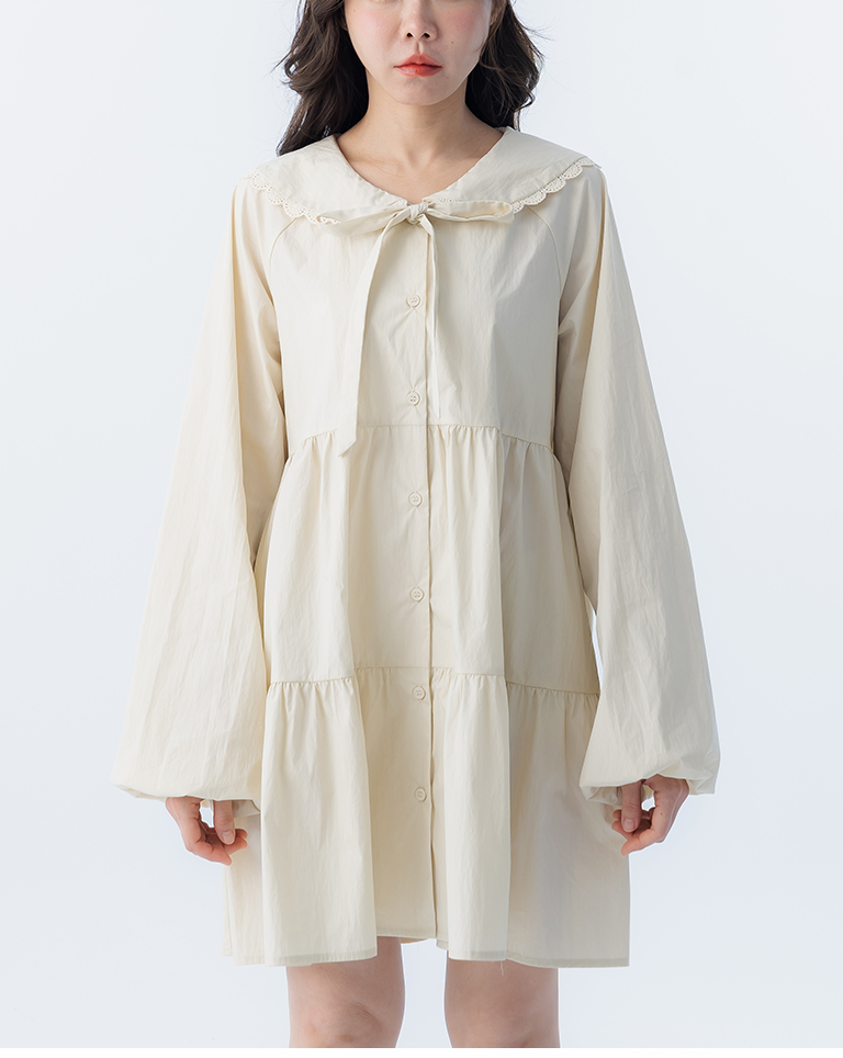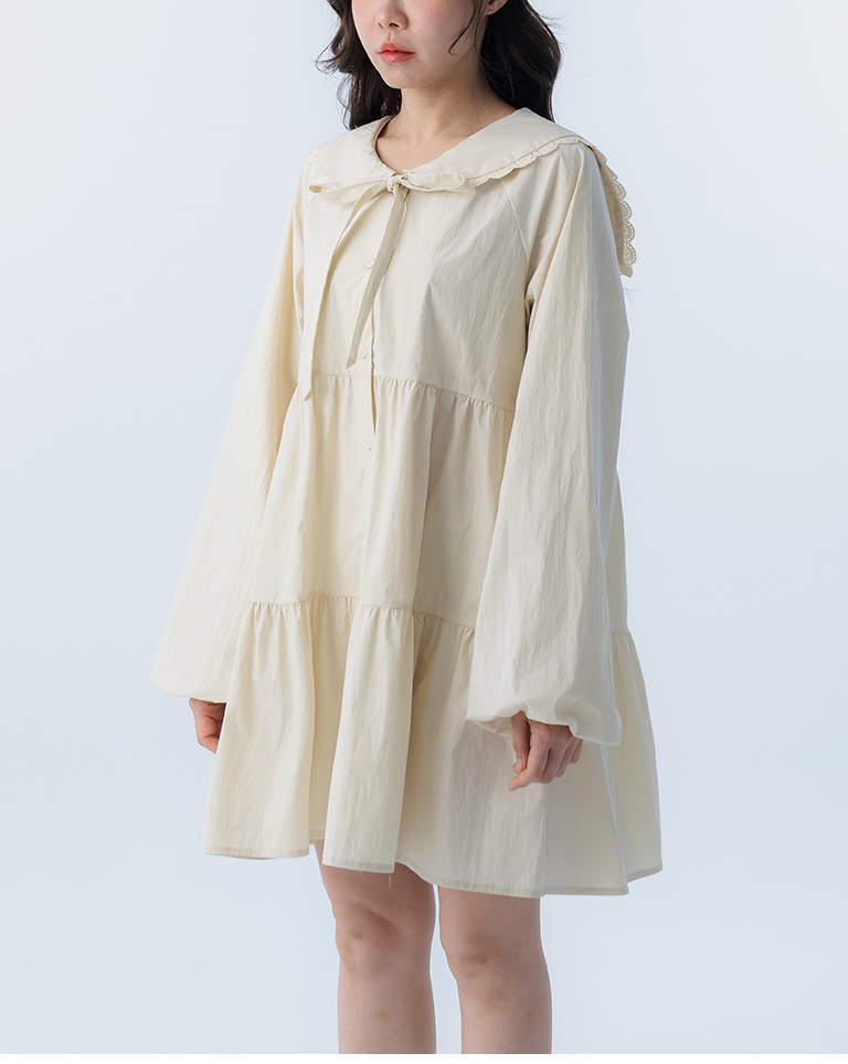 綁帶花邊大領片蛋糕短洋裝