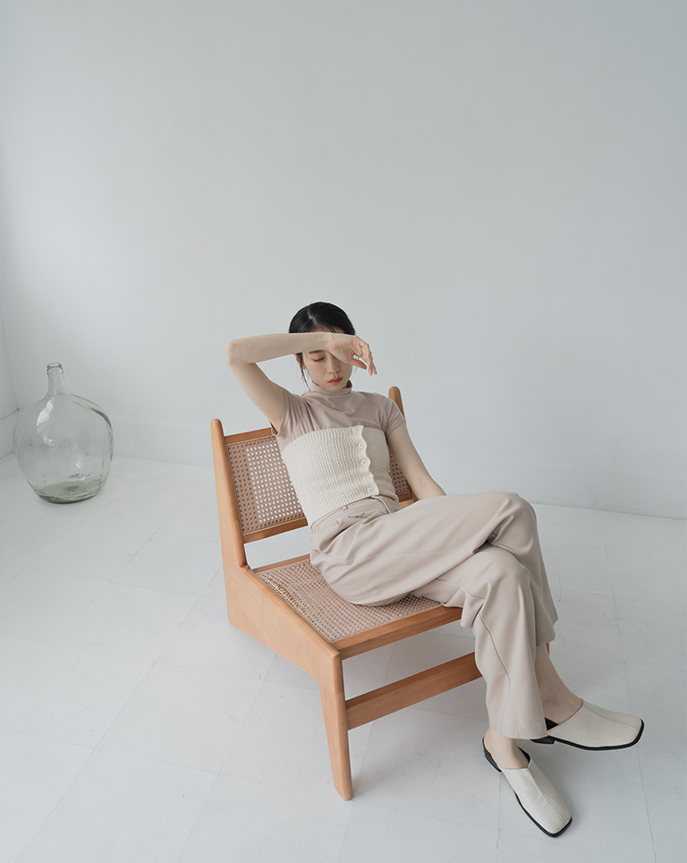 S~L身形實測!分尺寸皺皺木耳邊透膚高領長袖上衣