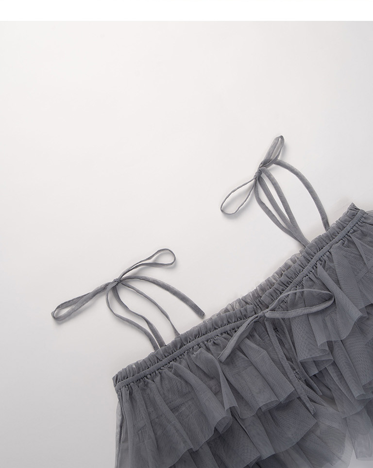 綁帶多層次網紗罩衫背心
