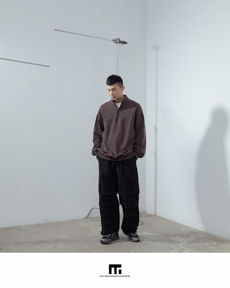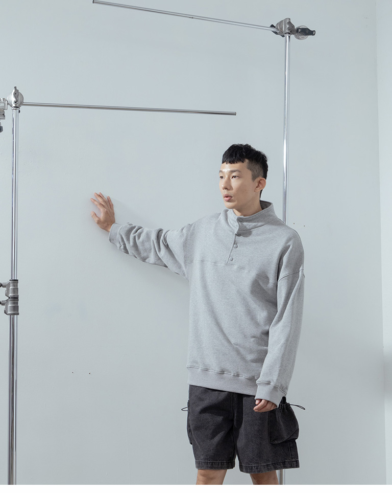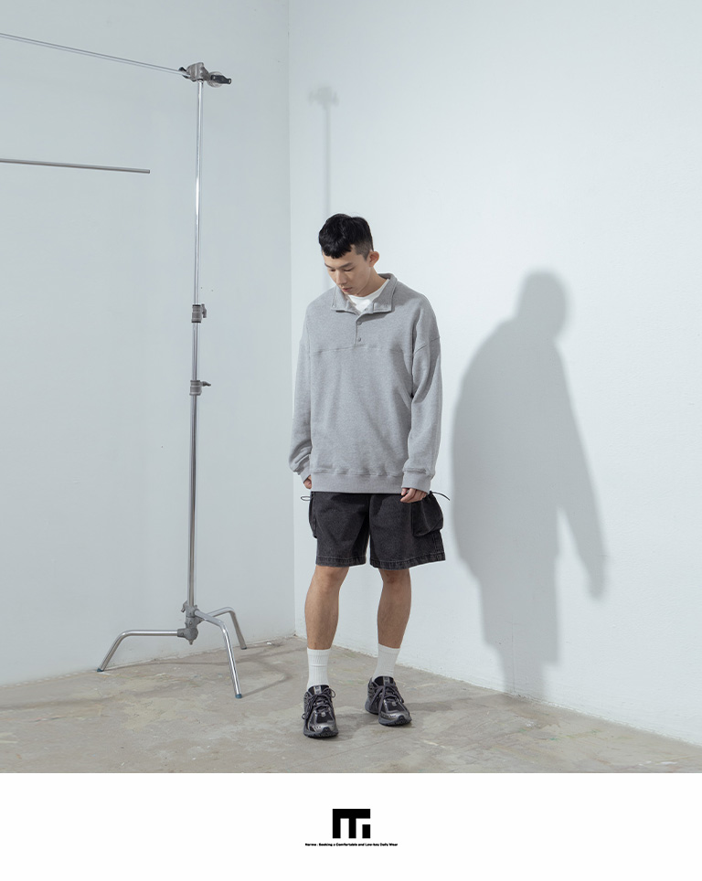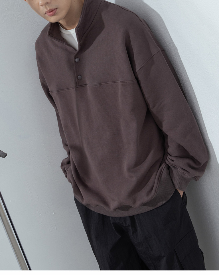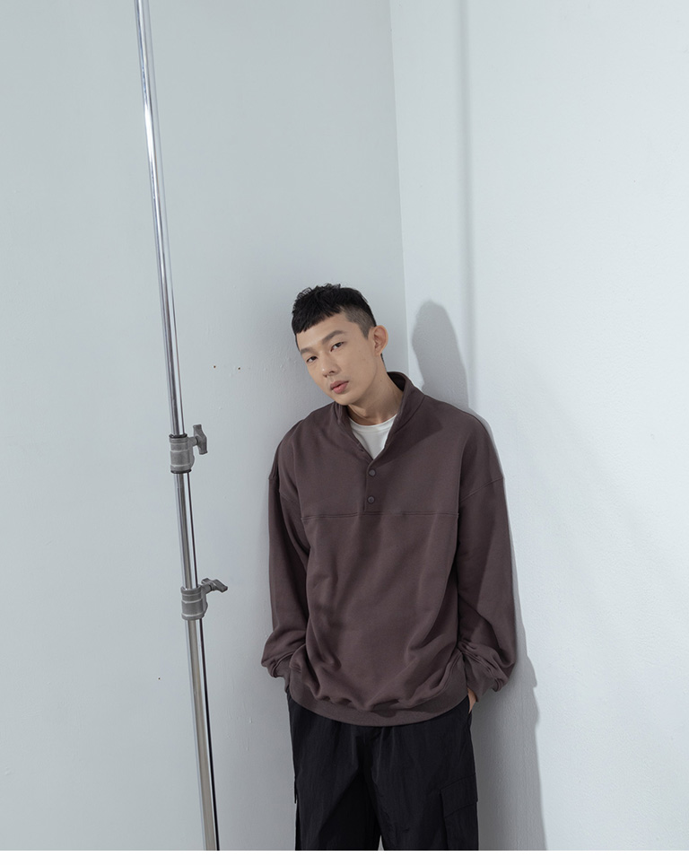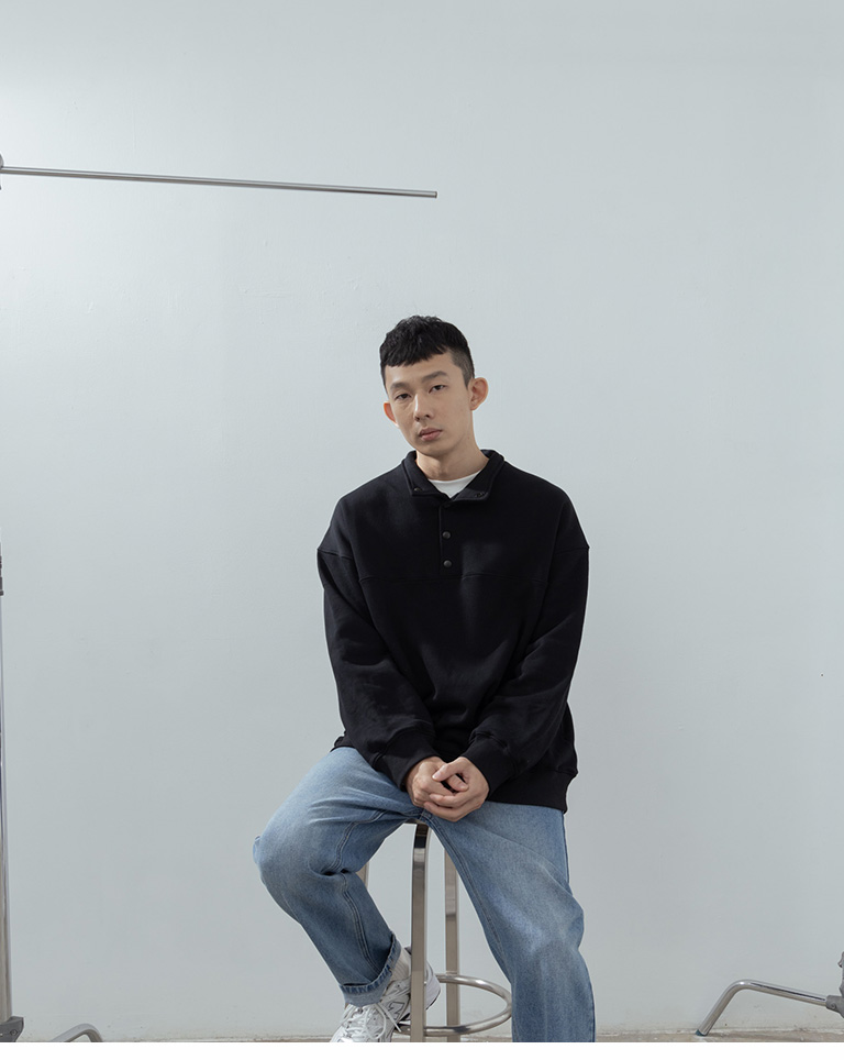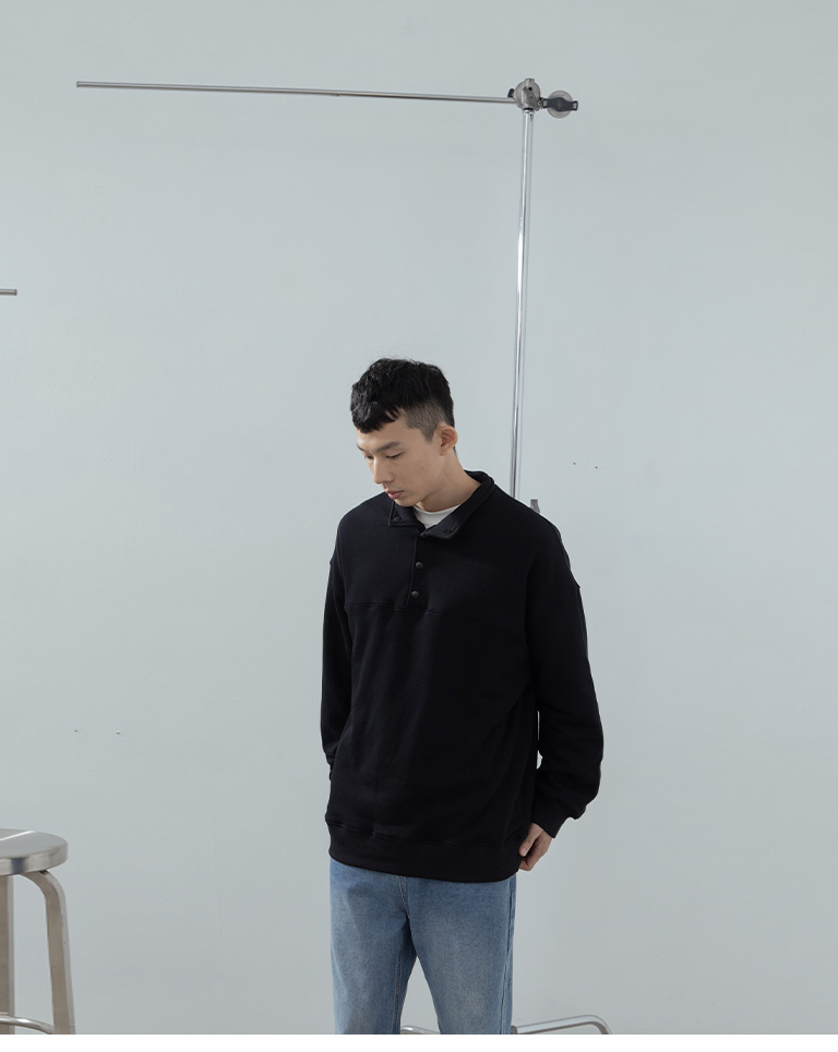 壓釦半門襟剪接造型上衣 三色售 M-XL