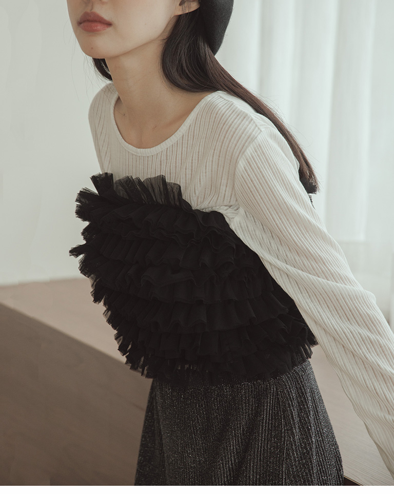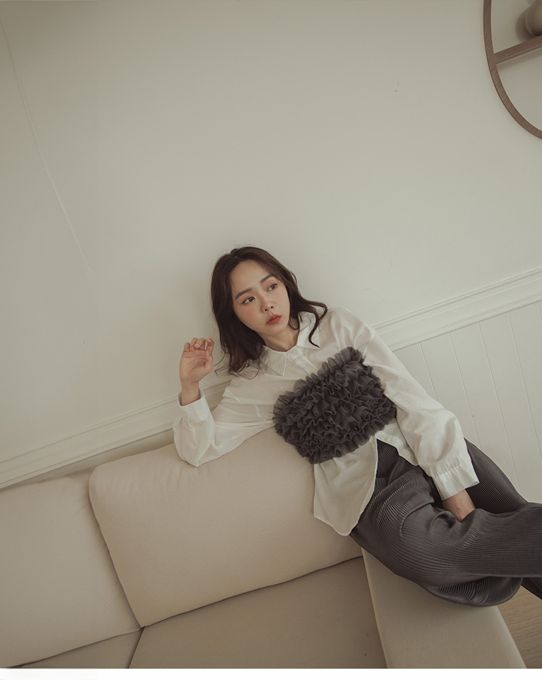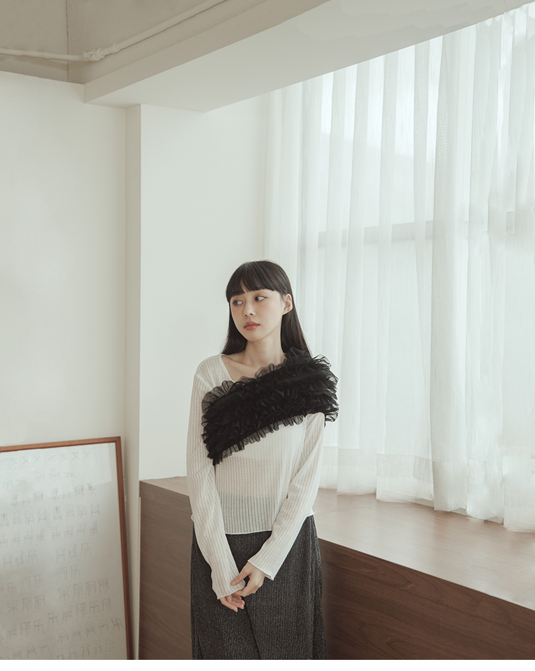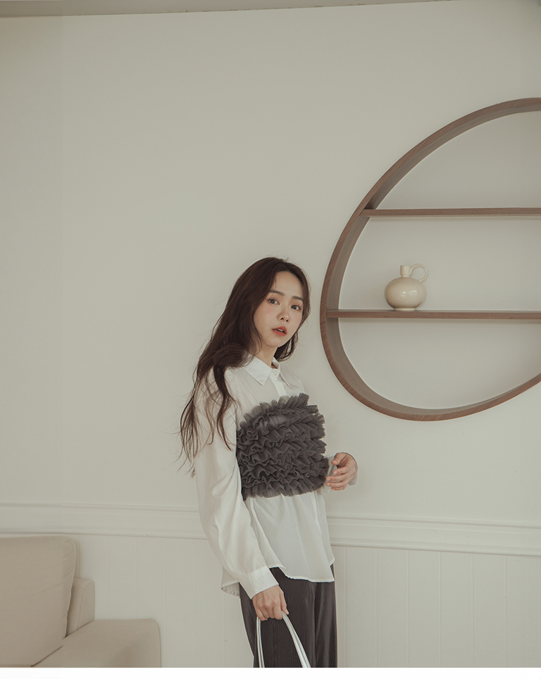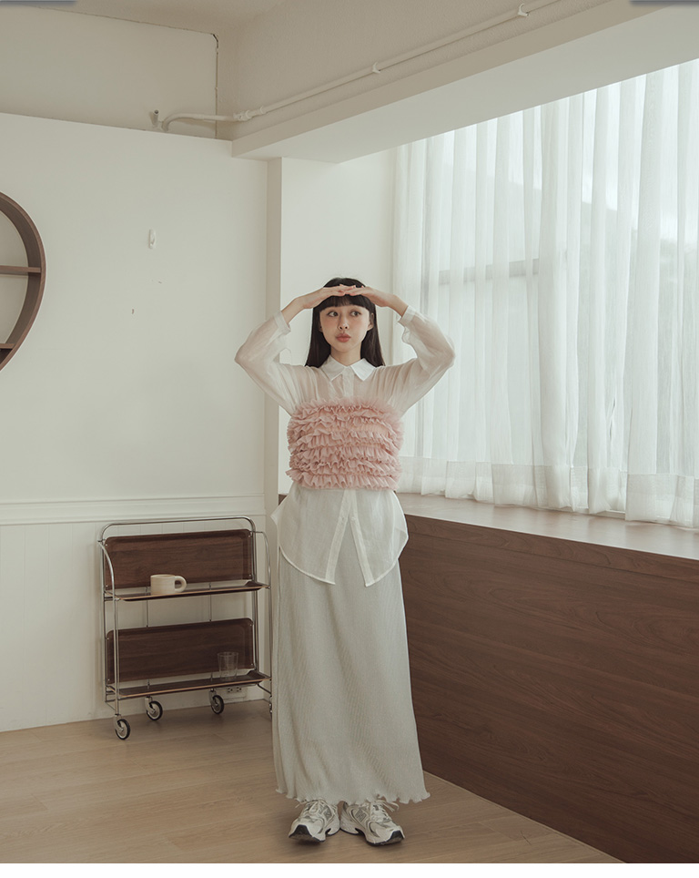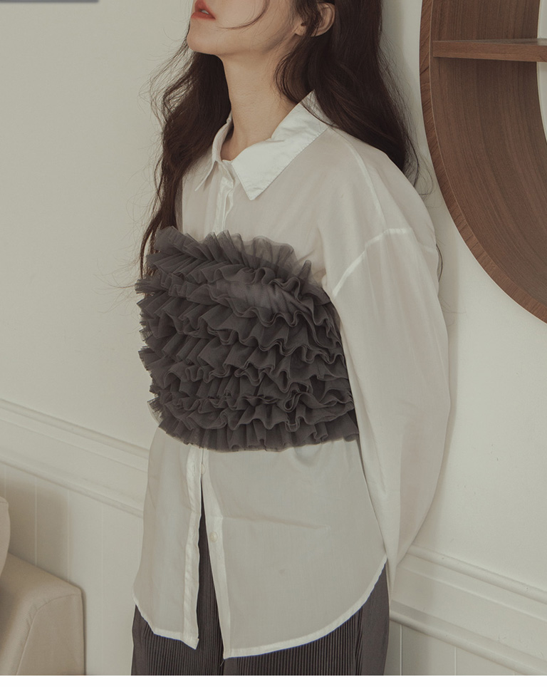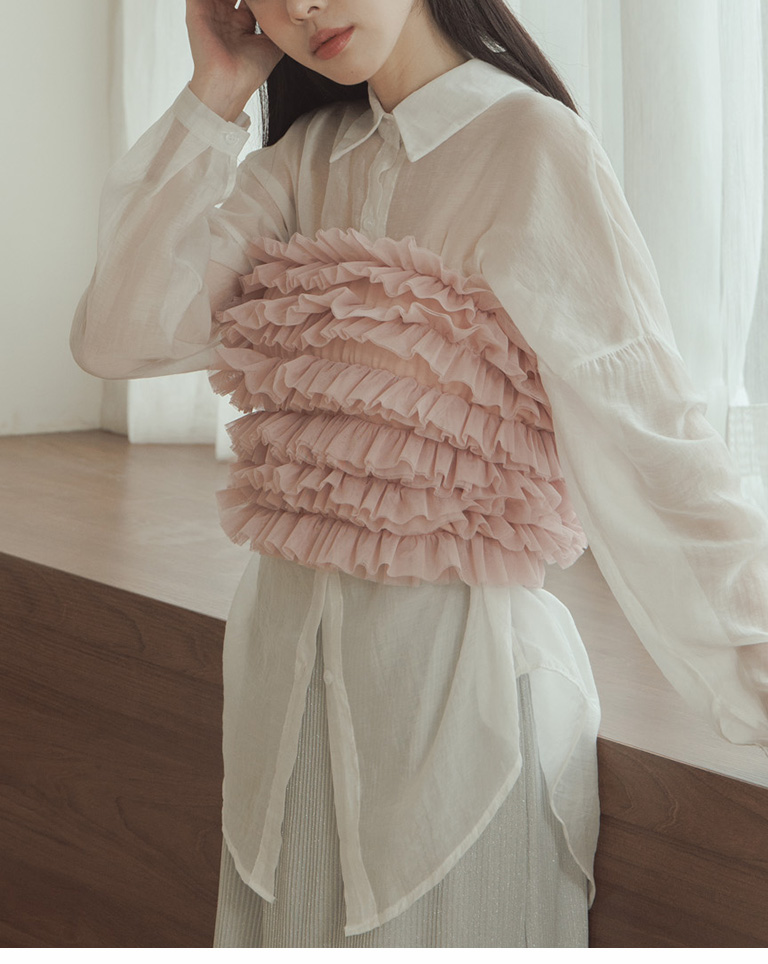 荷葉網紗造型罩衫平口 三色售