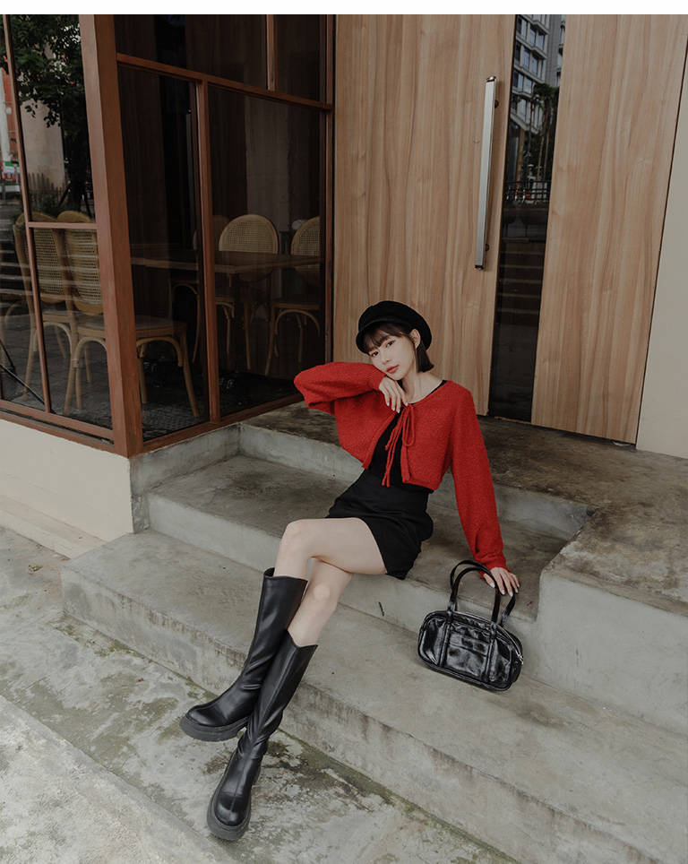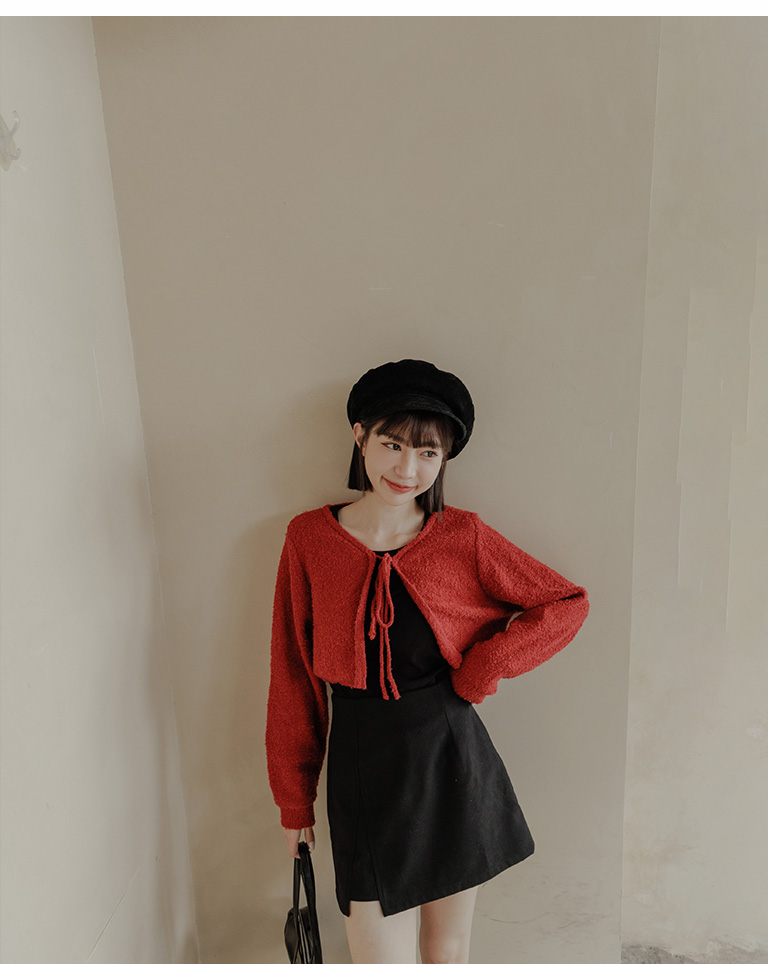 紅色針織外套為【02011161 Q毛綁帶造型針織罩衫 四色售】提供給您,謝謝。