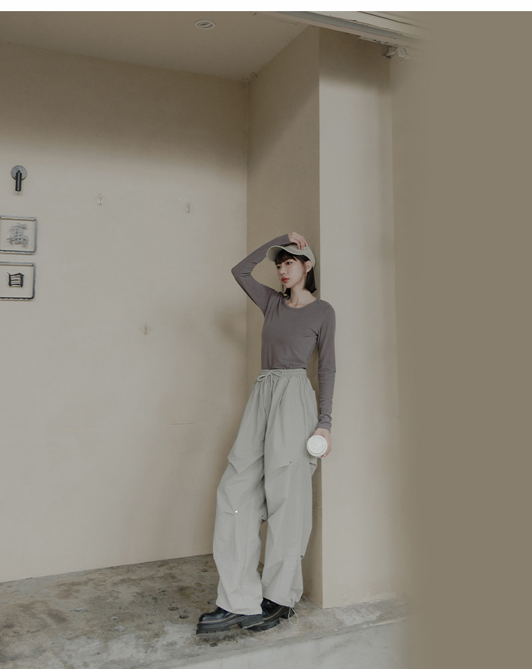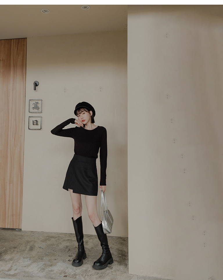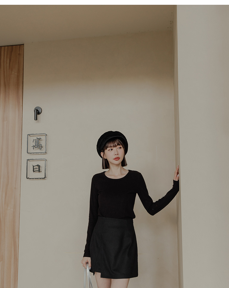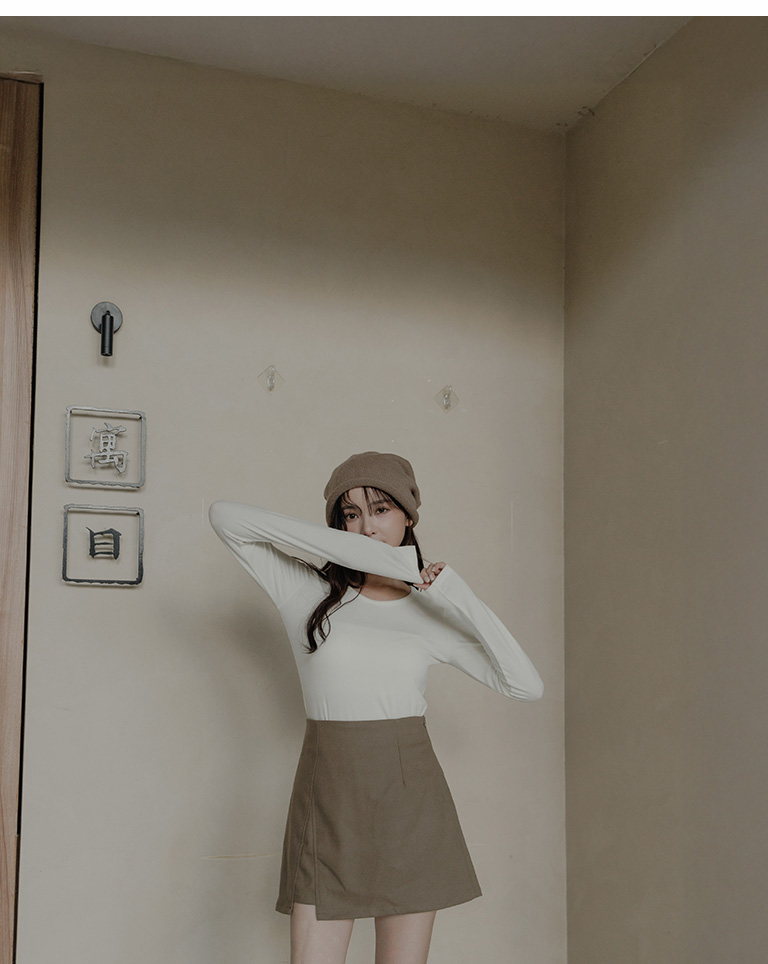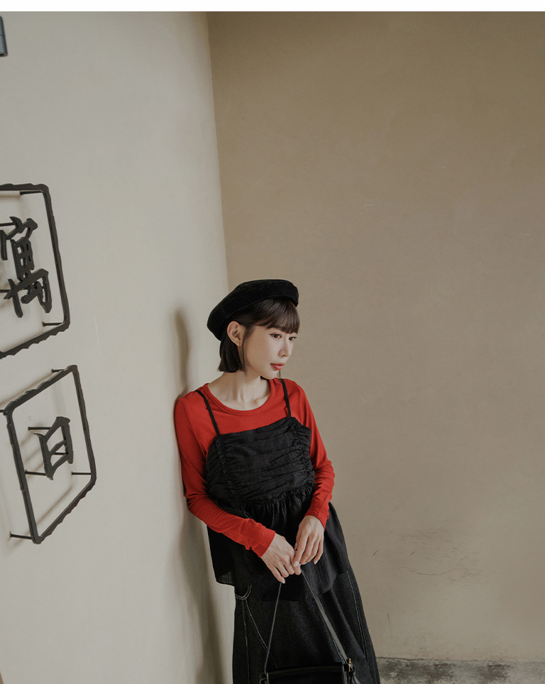 S~L身形實測!分尺寸皺皺木耳邊透膚高領長袖上衣