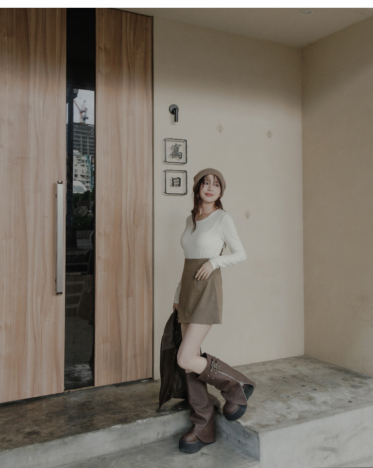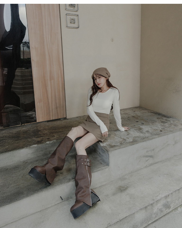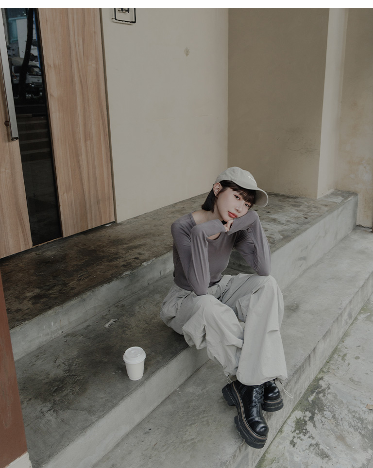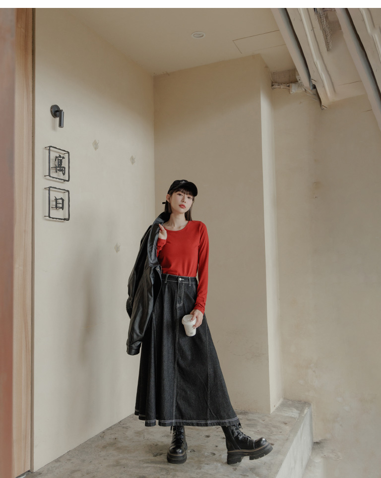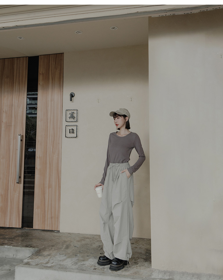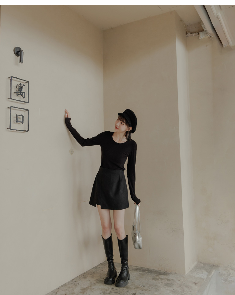 S~L身形實測!分尺寸皺皺木耳邊透膚高領長袖上衣