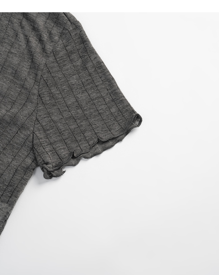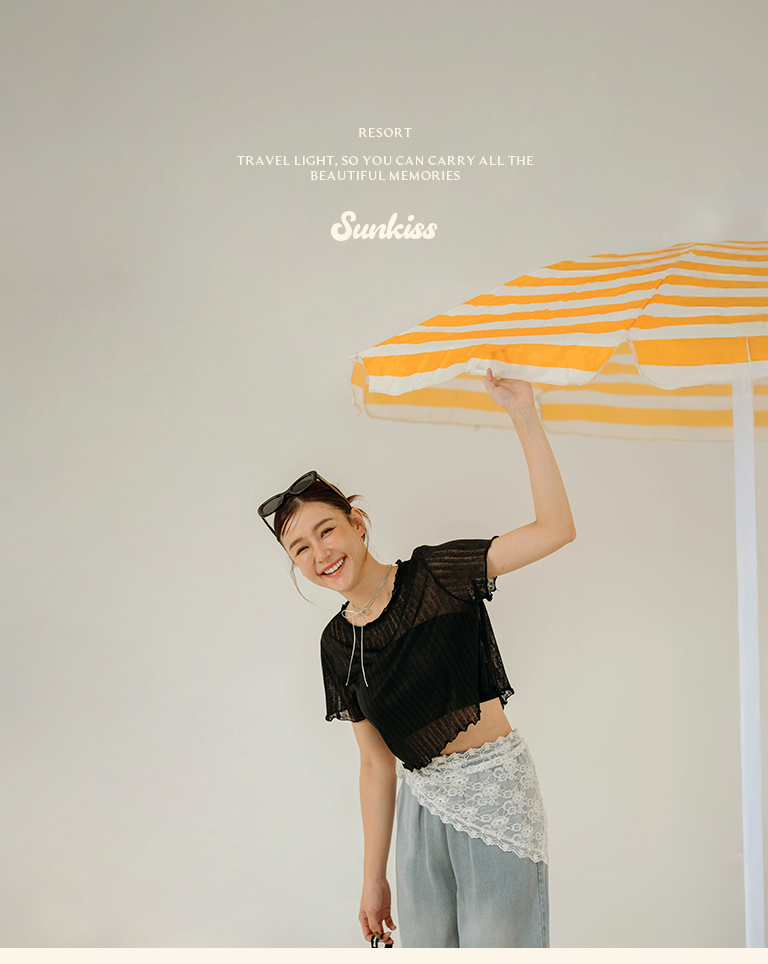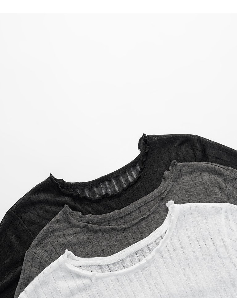 S~L身形實測!分尺寸皺皺木耳邊透膚高領長袖上衣