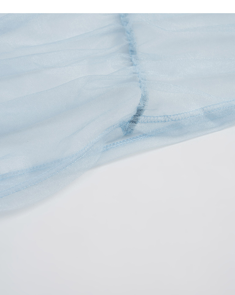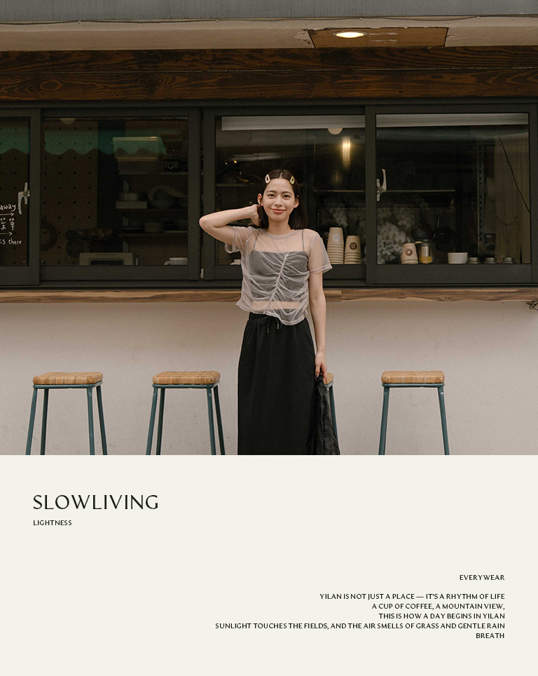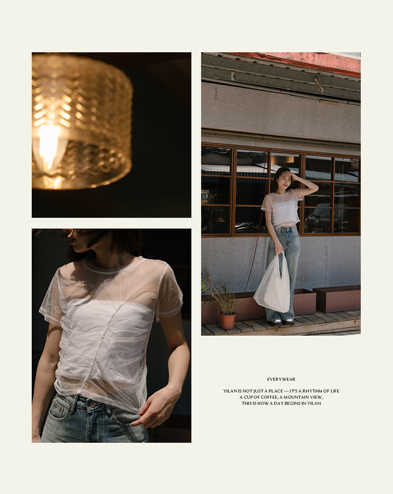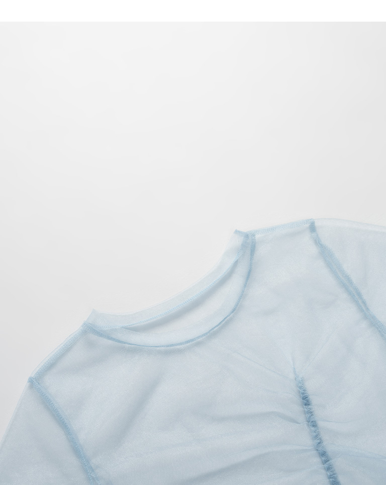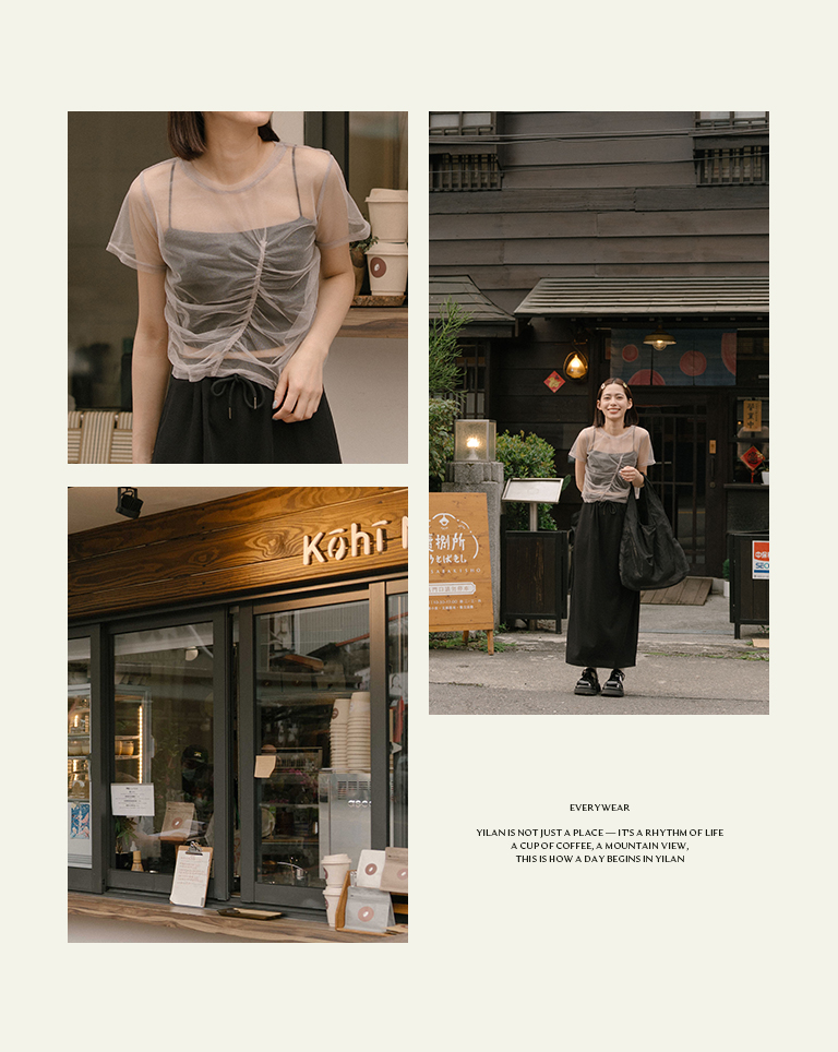 S~L身形實測!分尺寸皺皺木耳邊透膚高領長袖上衣