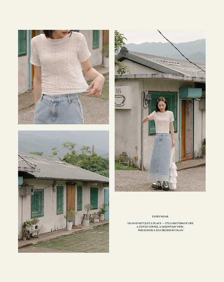 S~L身形實測!分尺寸皺皺木耳邊透膚高領長袖上衣