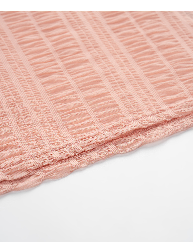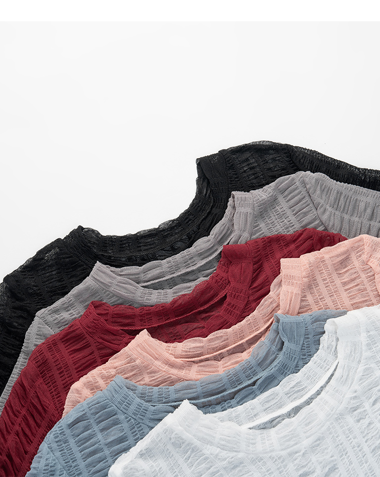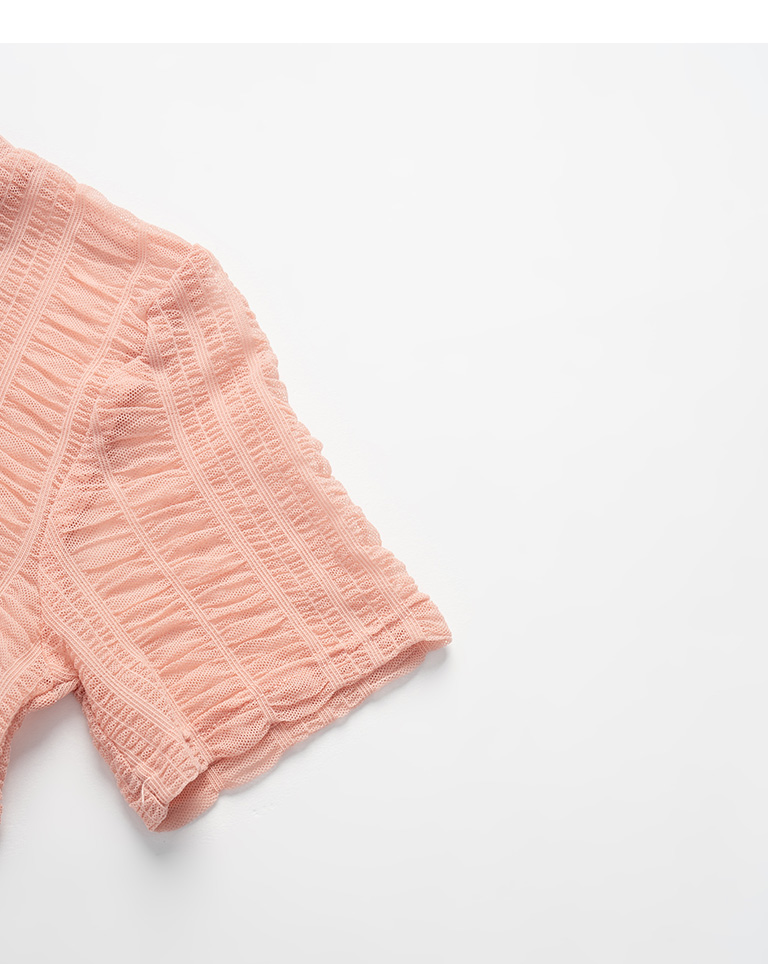 多色皺皺透膚網紗短袖上衣