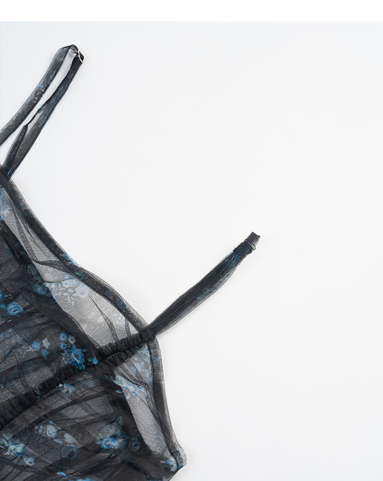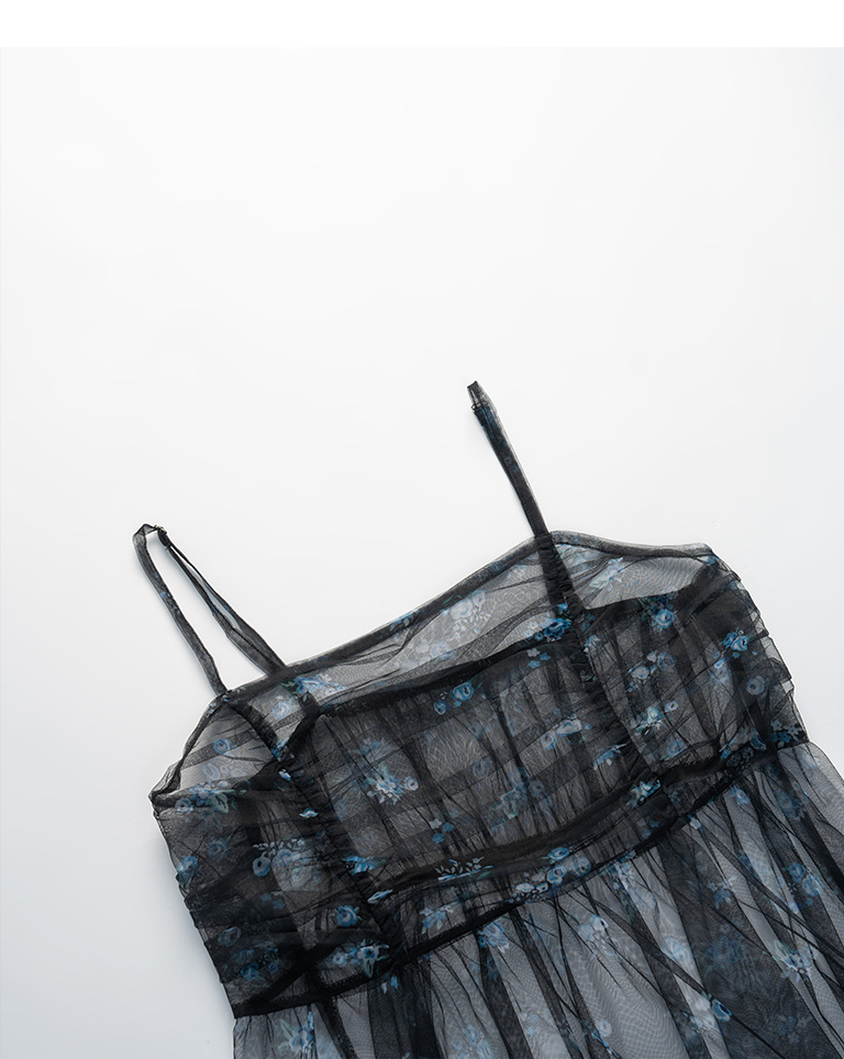 滿版印花透紗細肩罩衫洋裝