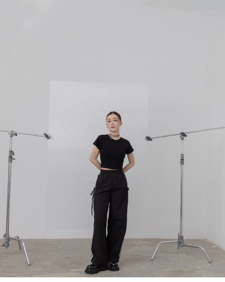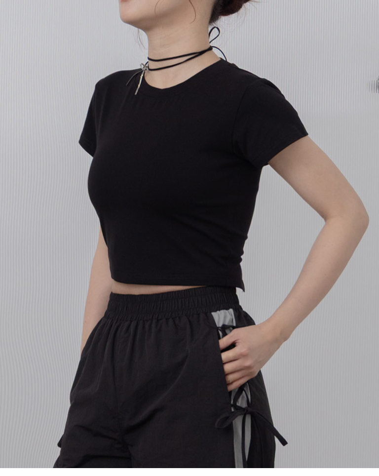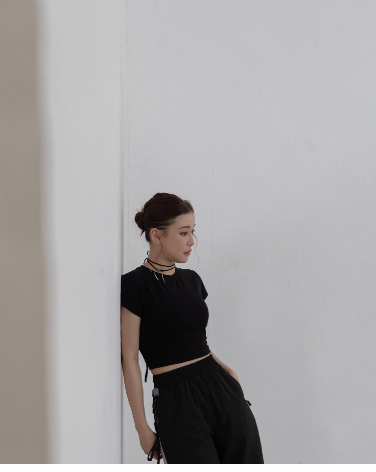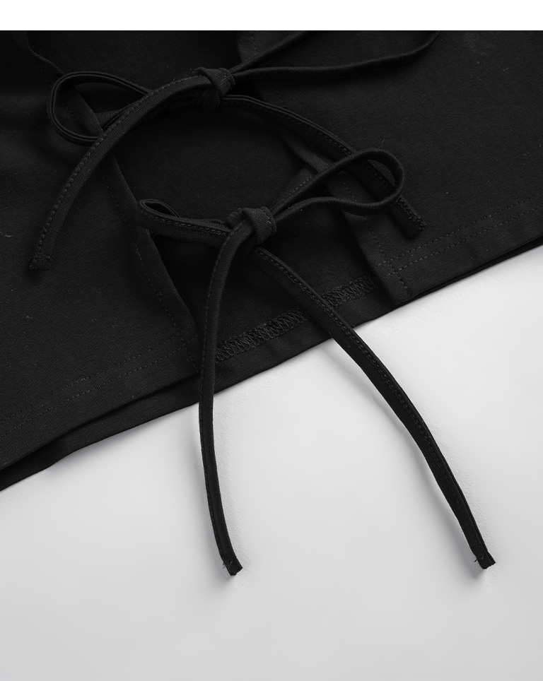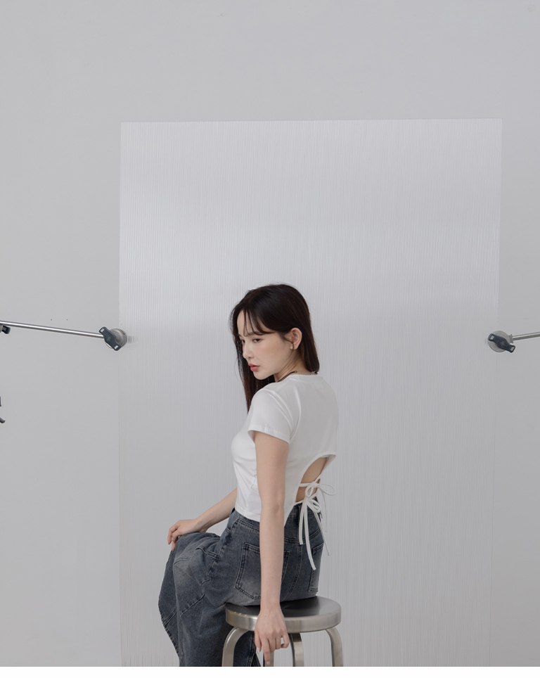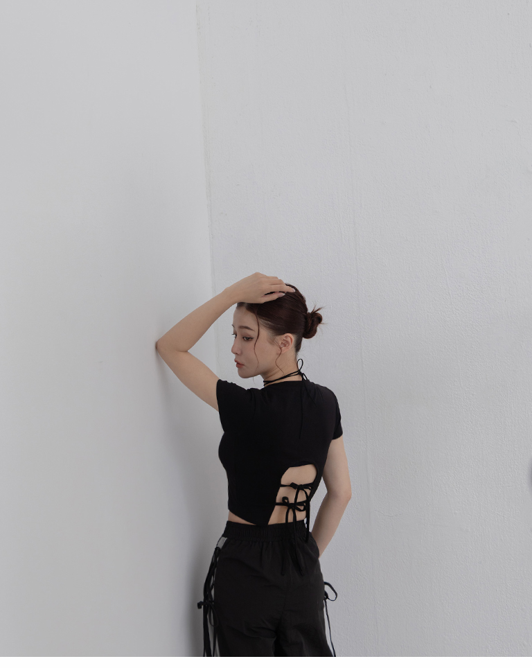 素面後雙綁帶挖洞短袖上衣